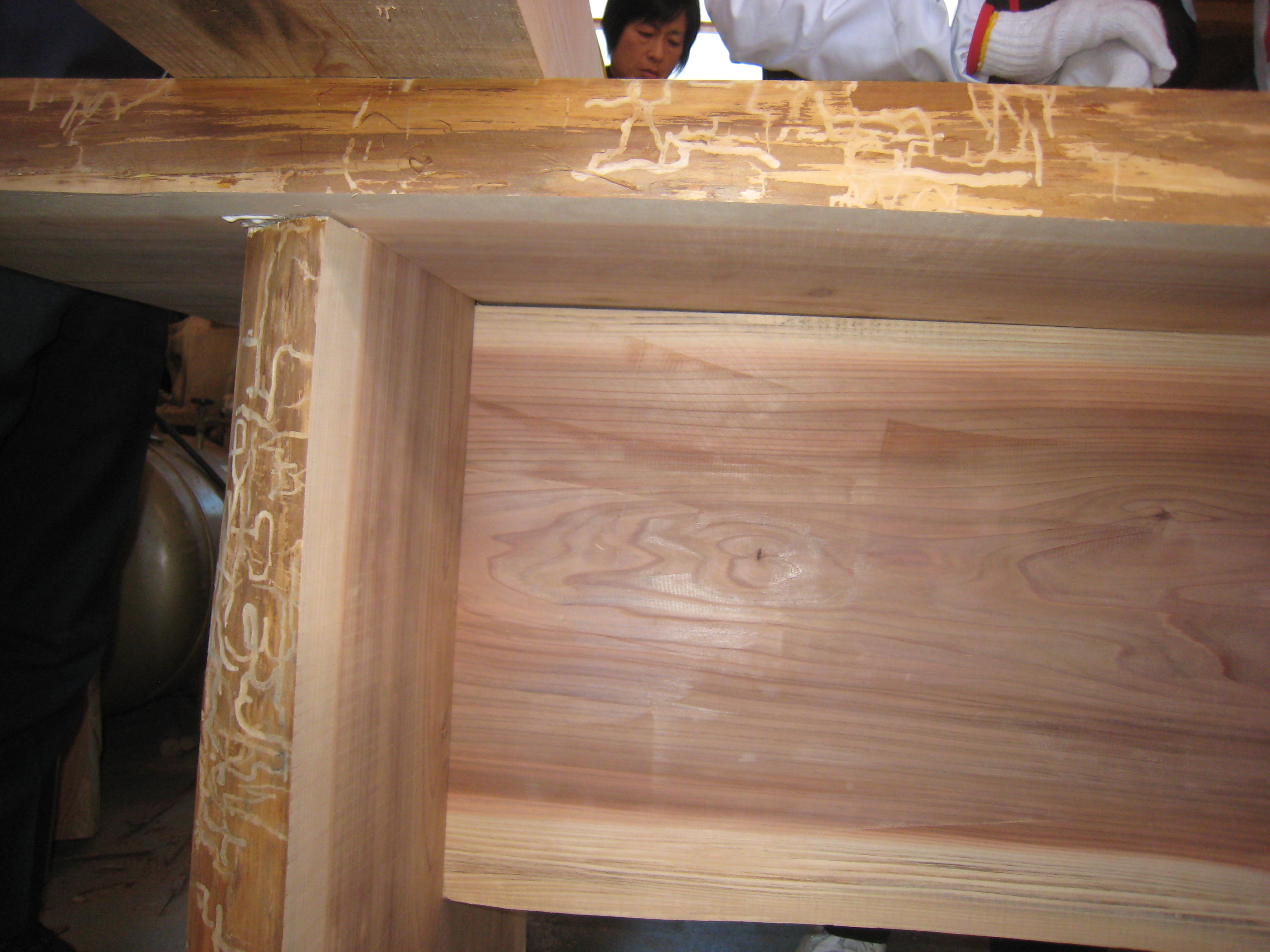 部材をさらに細かく加工しました。木くずが飛ぶとこんな状態になります。