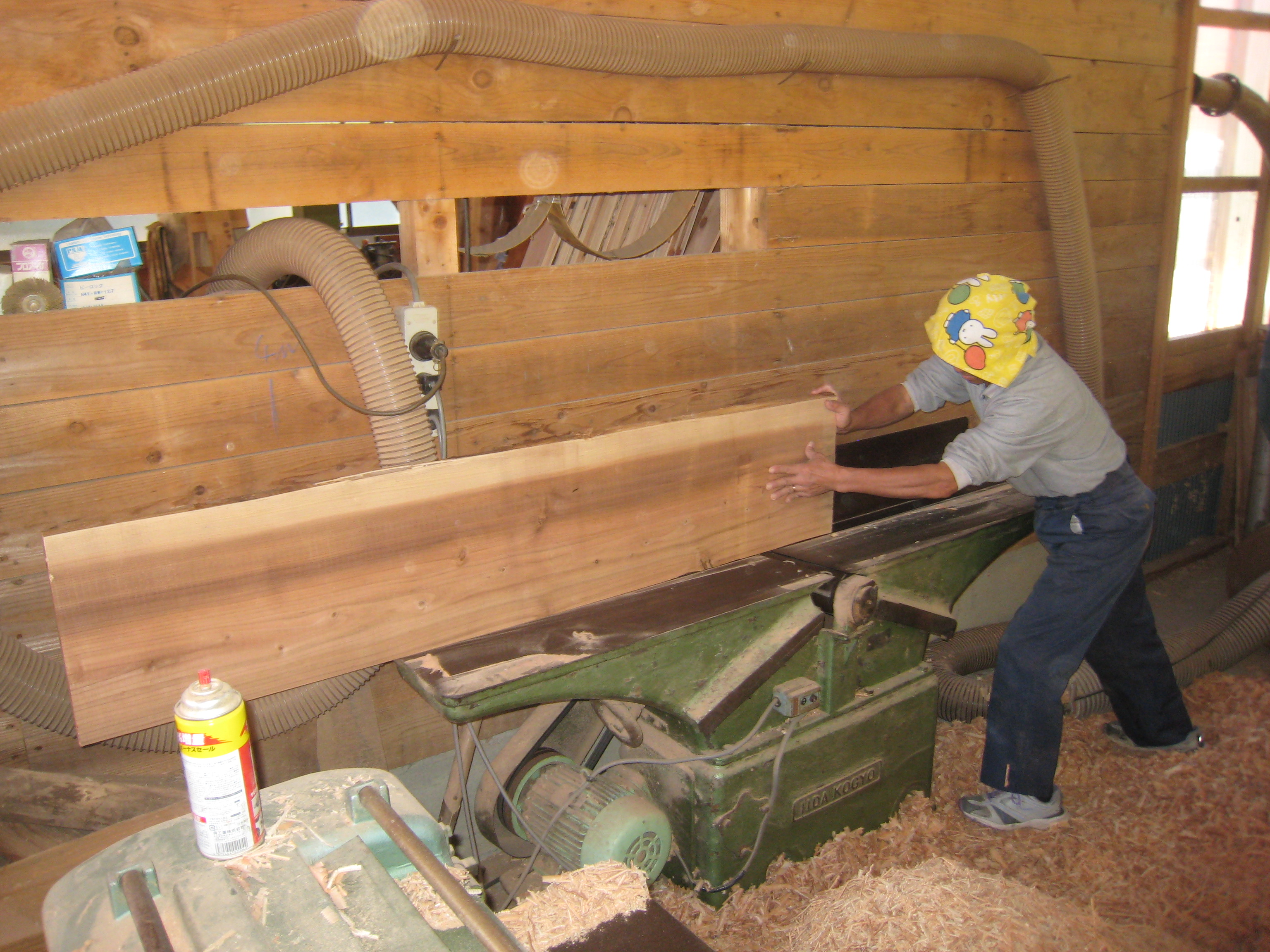 隣では職人さんが、ベンチの部材を加工してくださっていました。