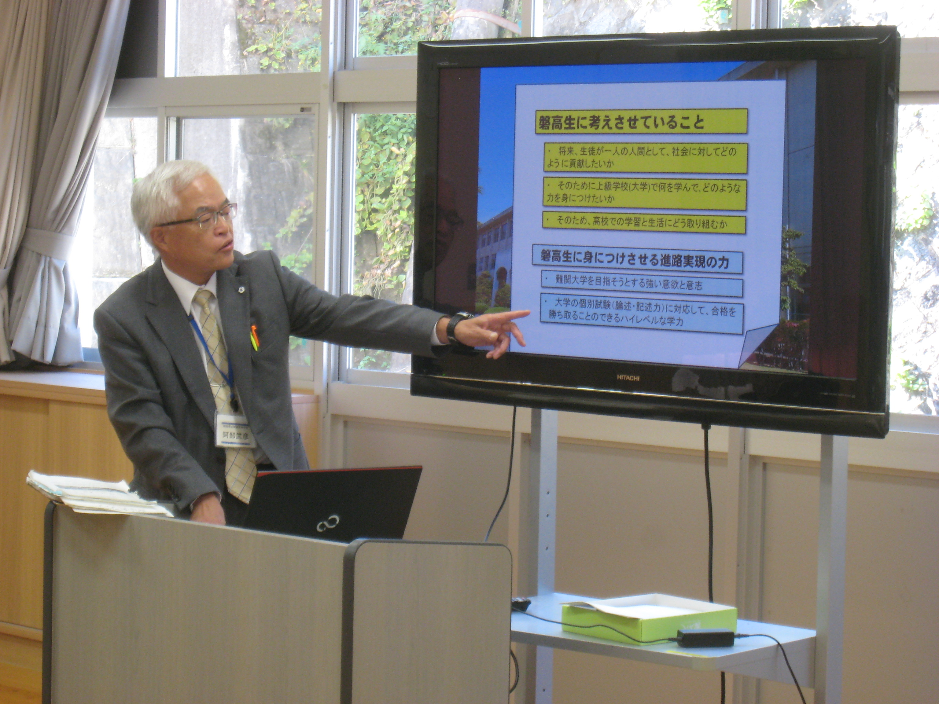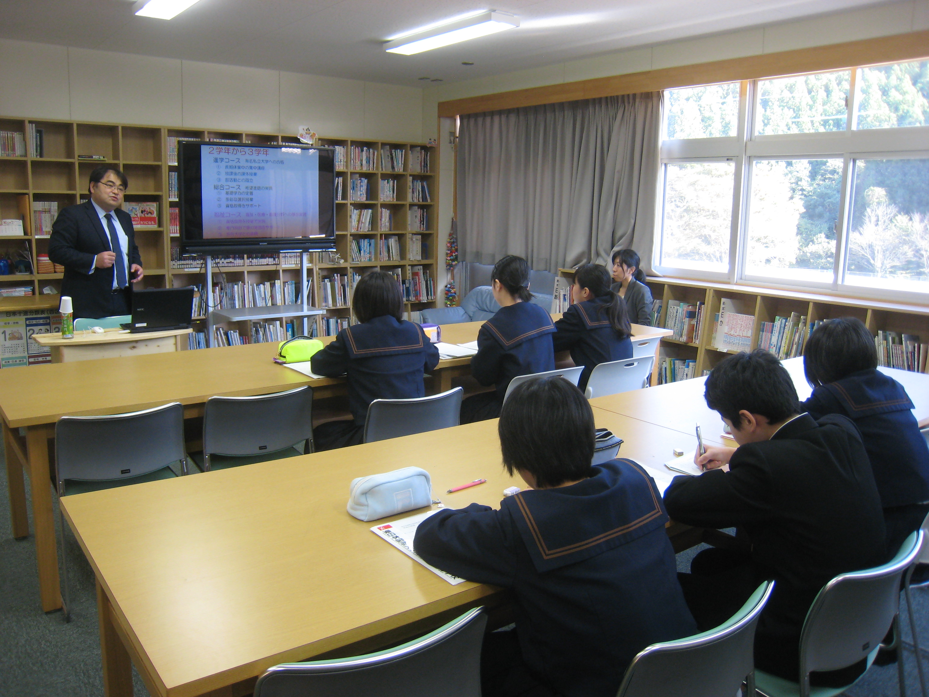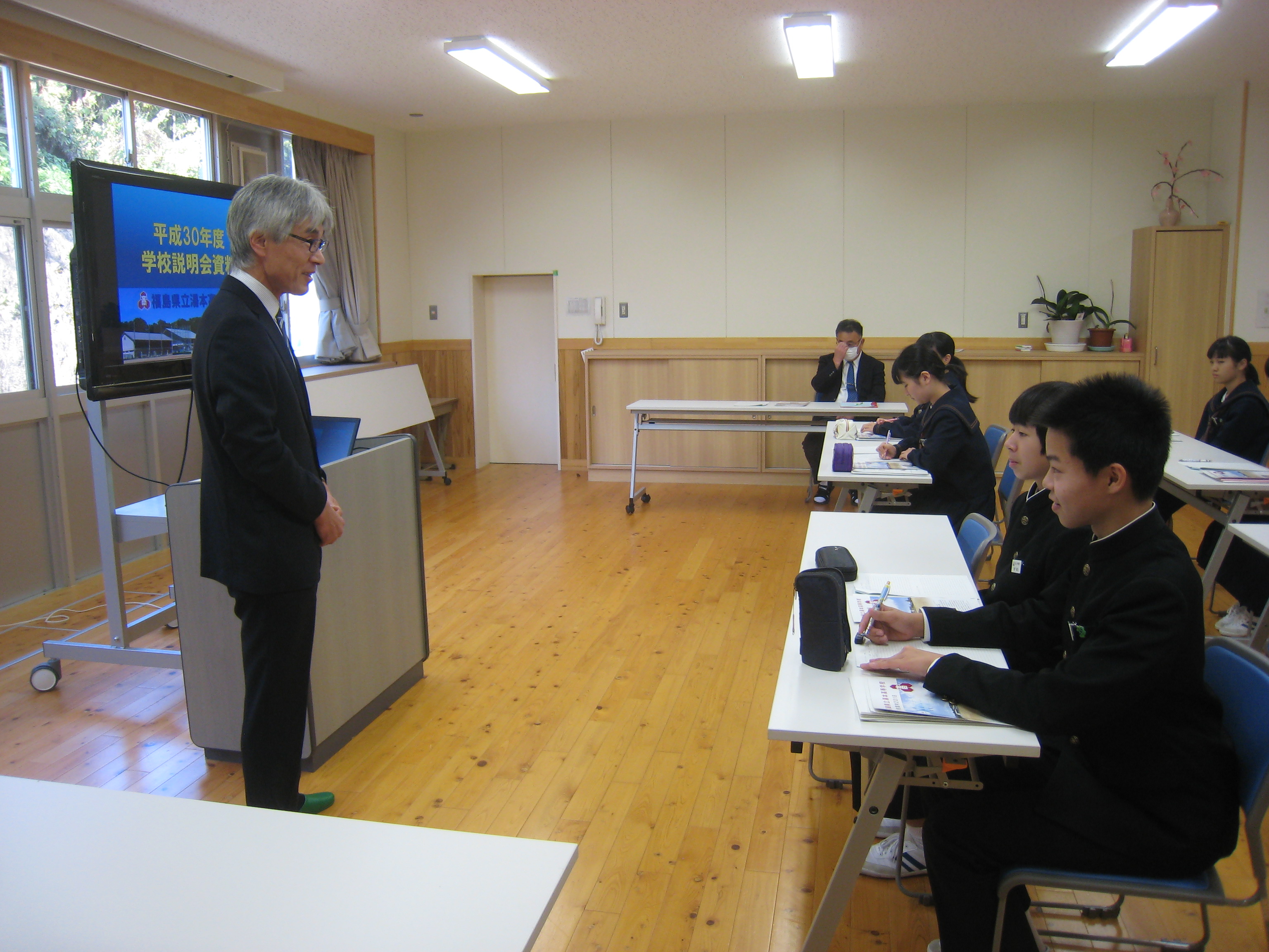 本校では、生徒の希望に合った高等学校、8校の校長先生や教頭先生をお招きし、高校説明会を実施しました。今年度は中学校の保護者だけではなく、小学校で参加を希望する保護者の方にも出席していただきました。2020年度から入試制度が大幅に変わることから、「2020年度入試説明会」も開催しました。
