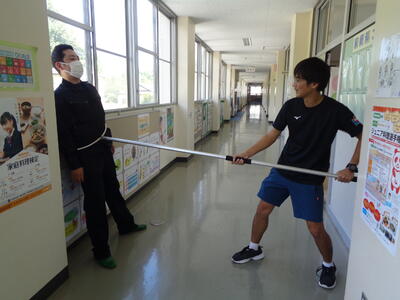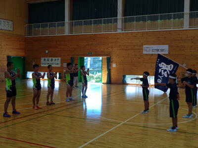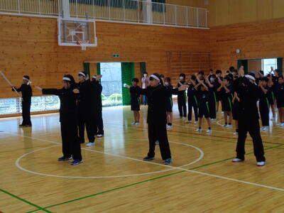 新人駅伝大会と新人水泳大会を前に、小学生の応援団が壮行会を開いてくれました。