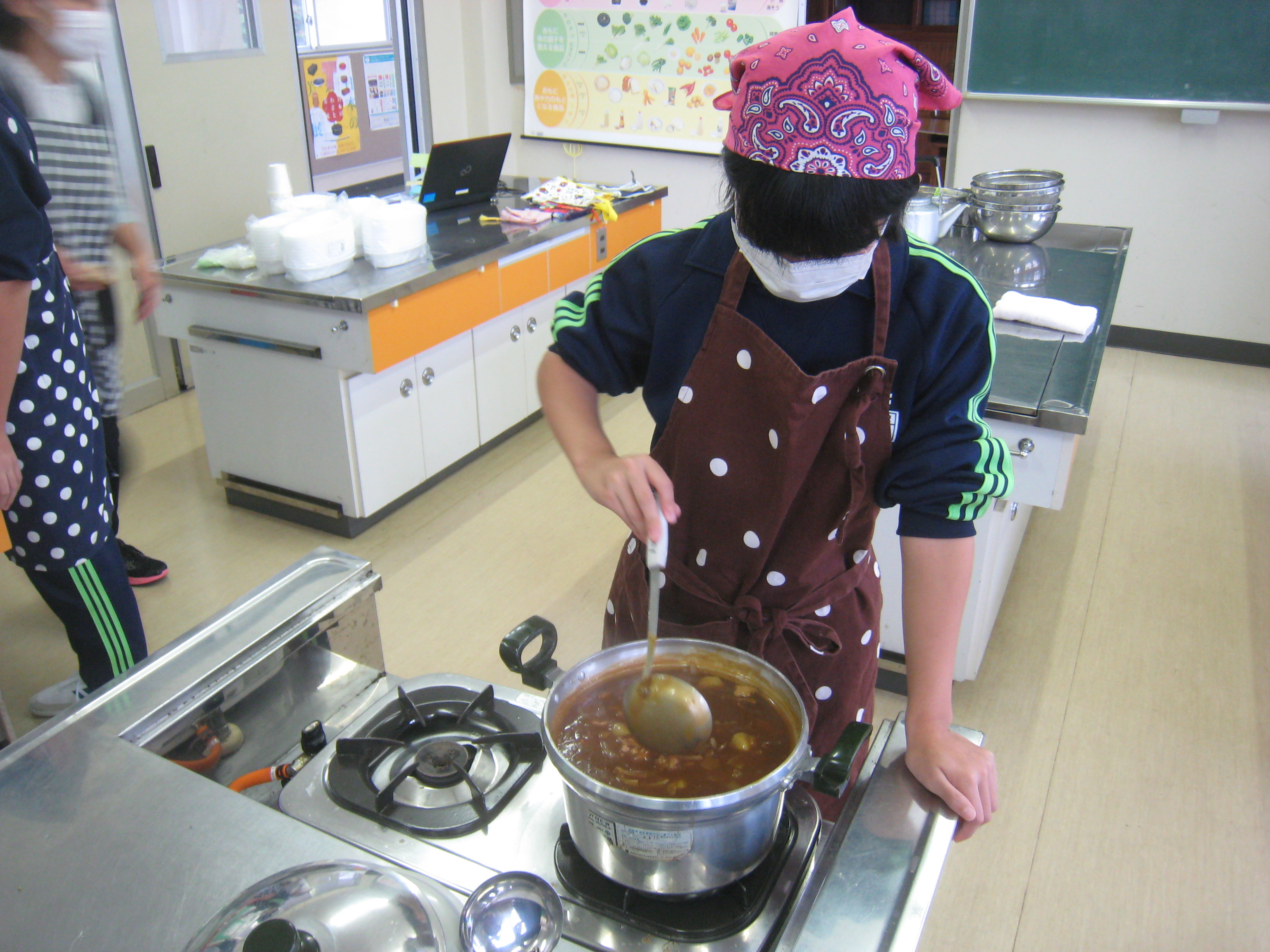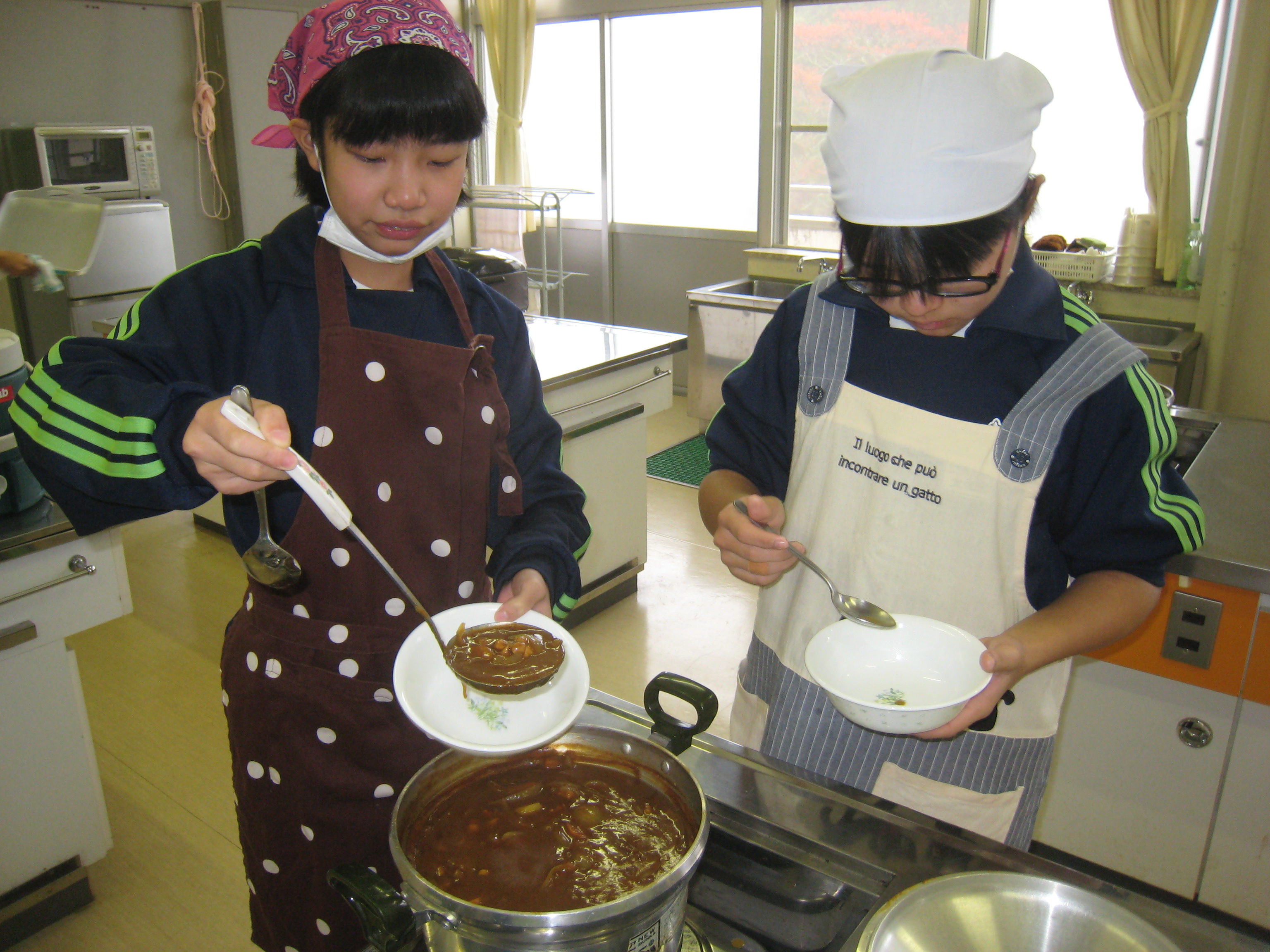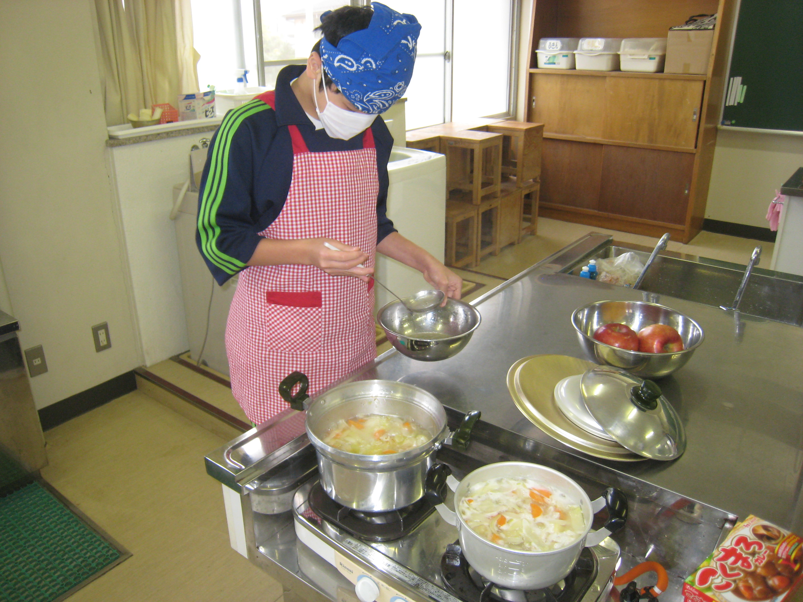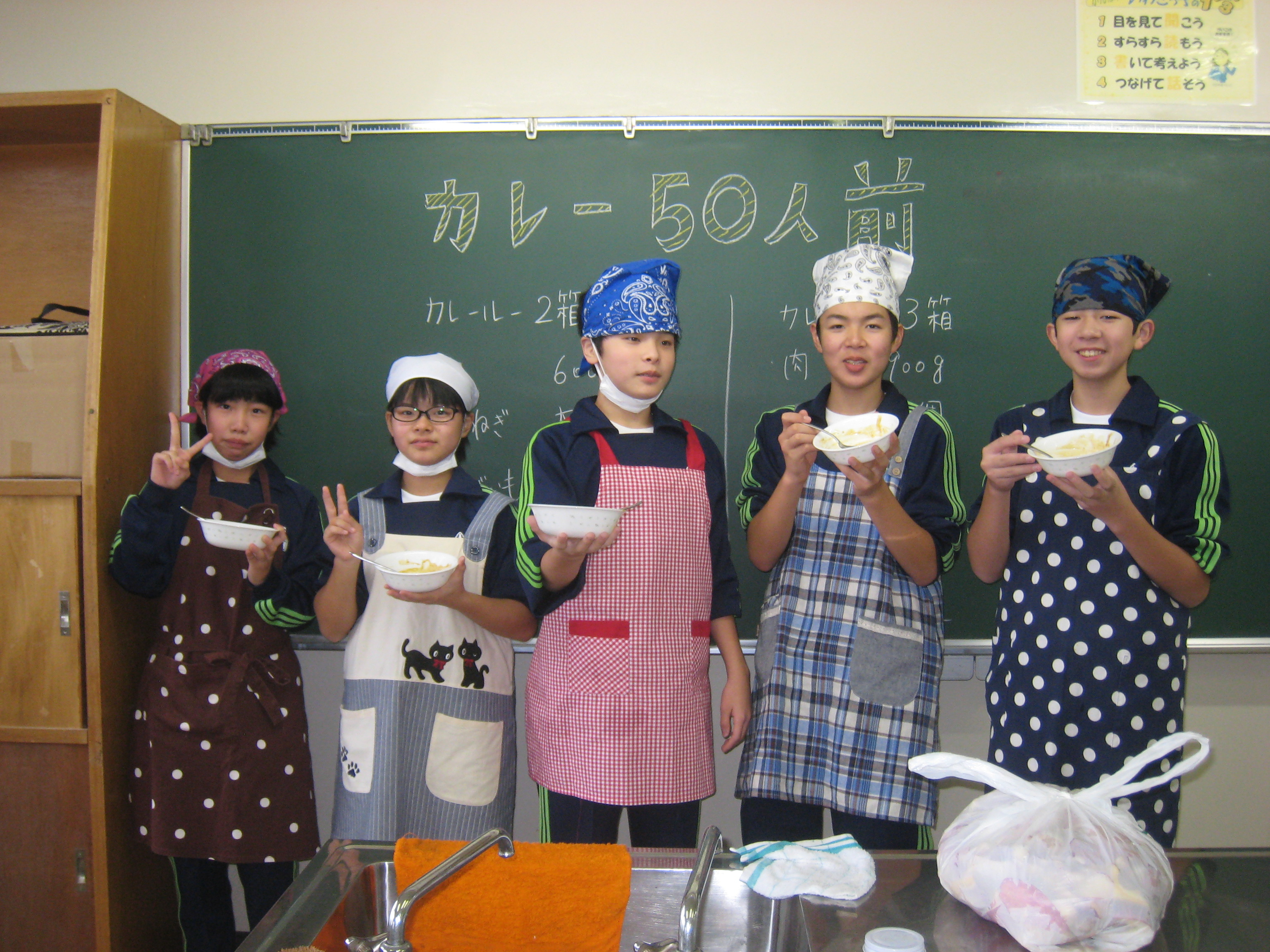 1年生の「カレー作り50人前」大成功でした。1年生のみなさん、ごちそうさまでした。