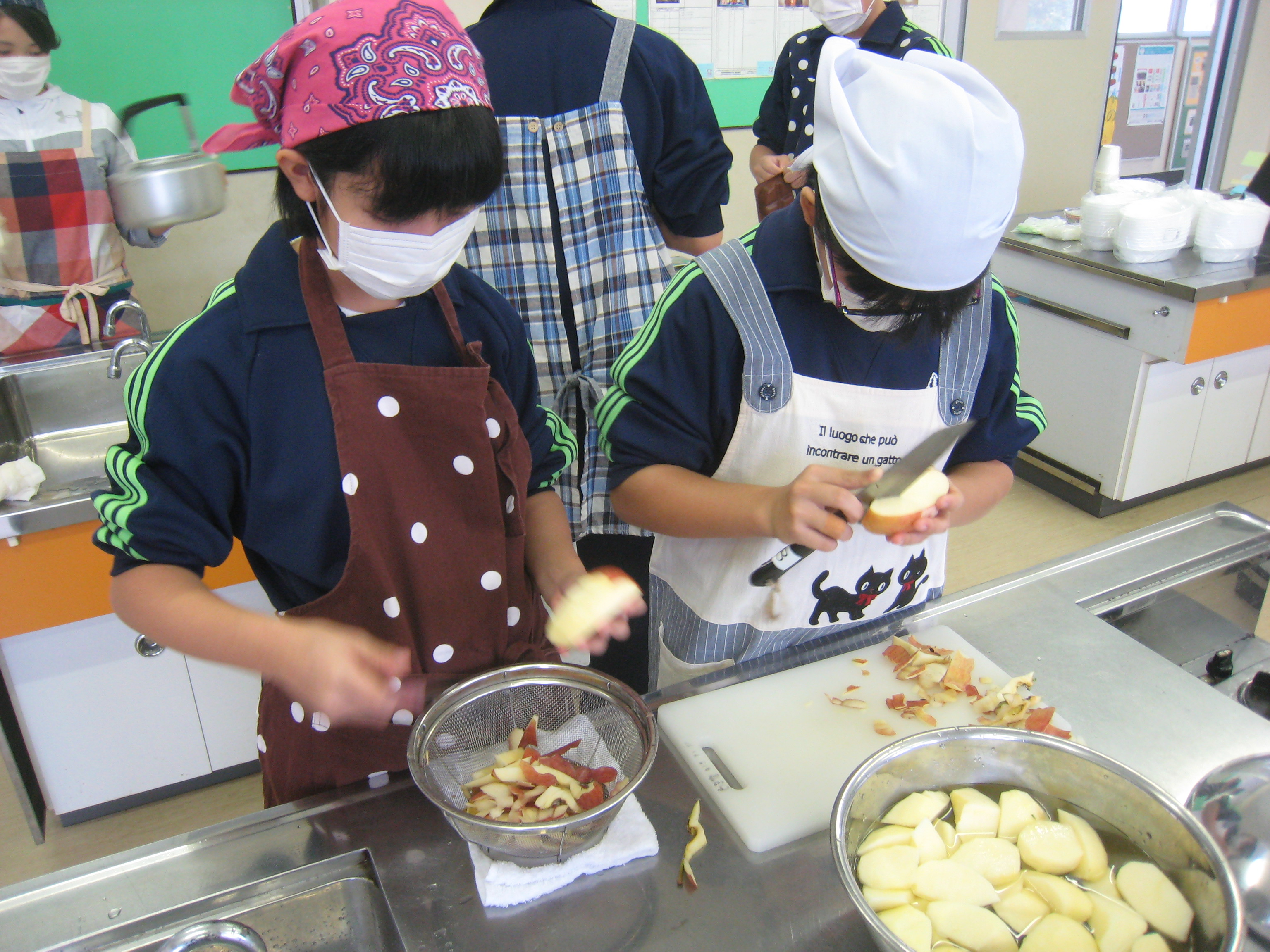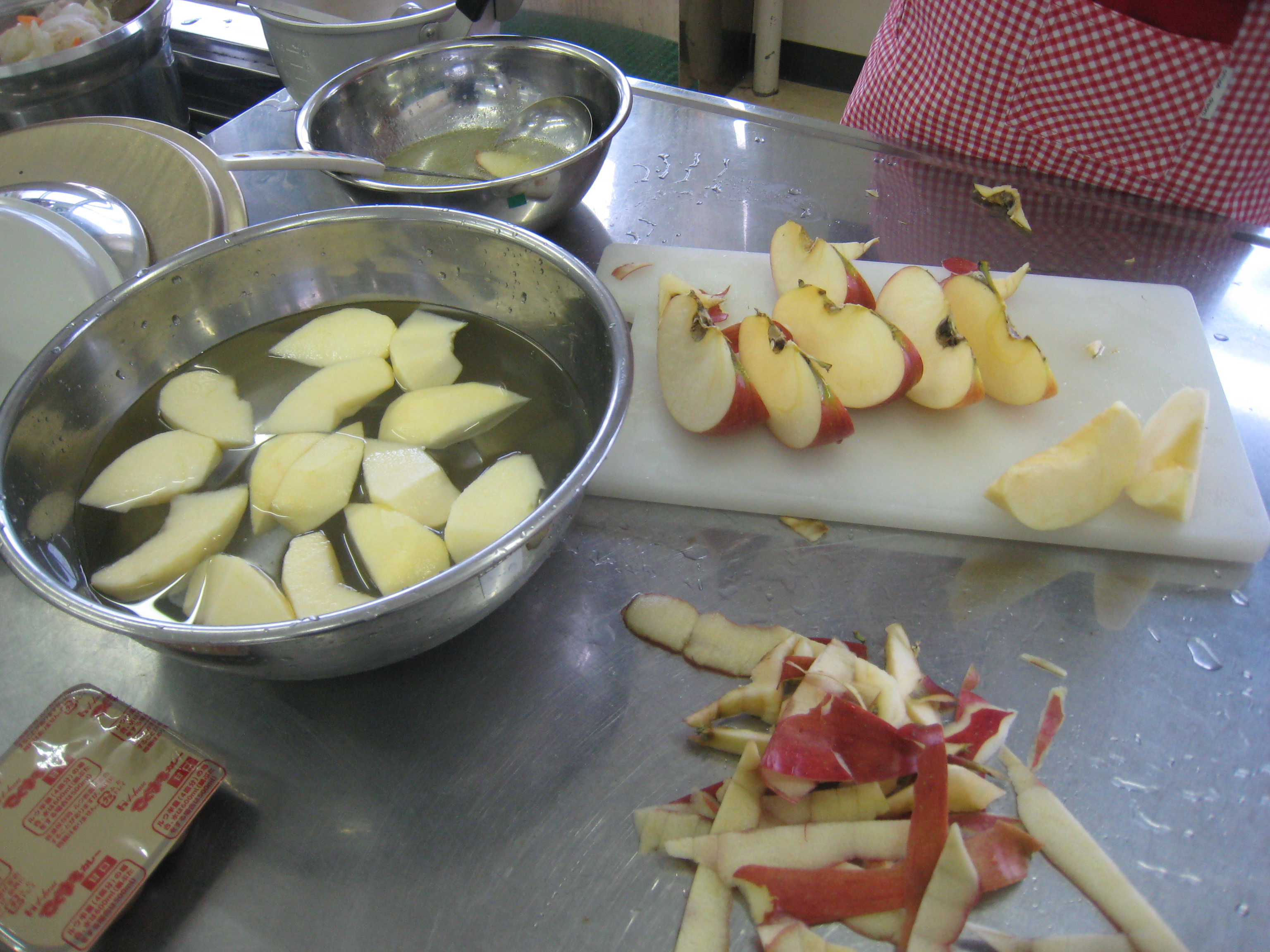 次は、りんごの皮むきです。これは上手?練習が必要?