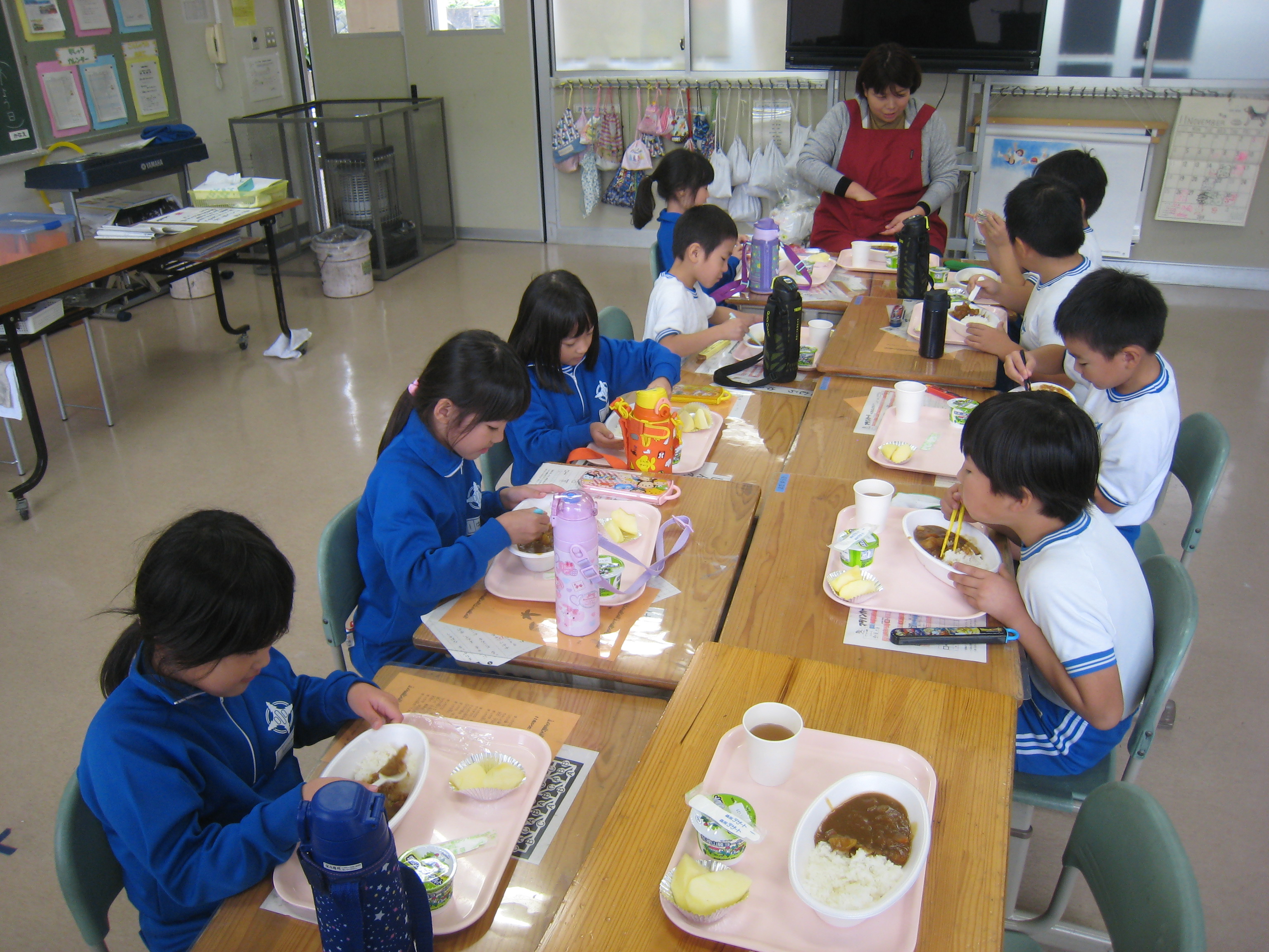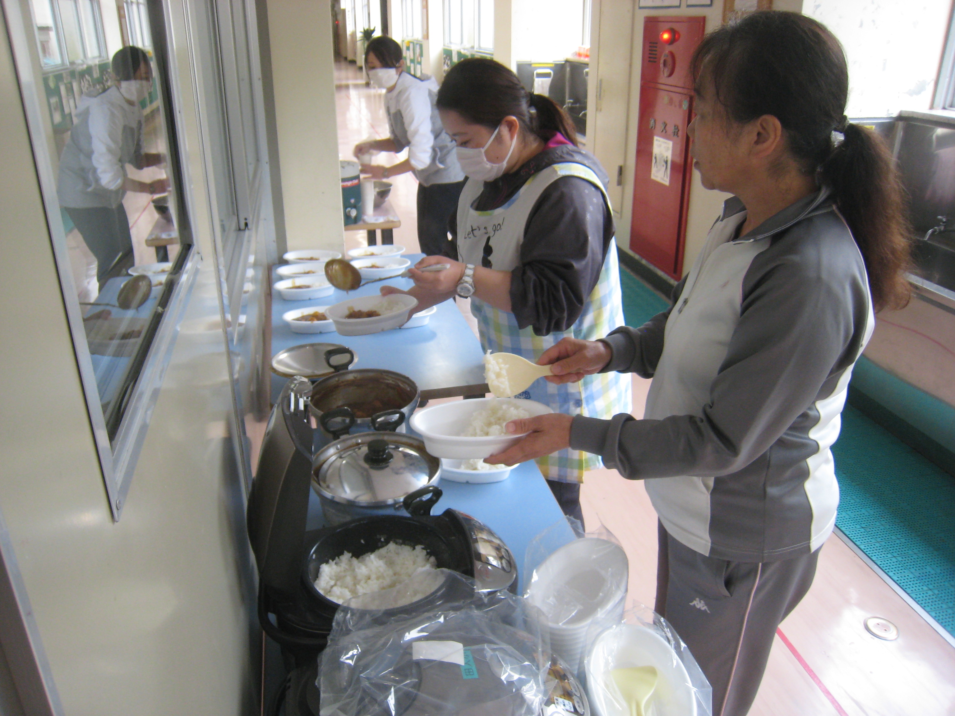 小学校も配膳準備