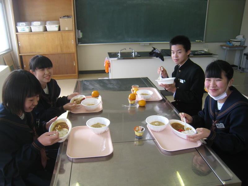 12月4日は、本年度2回目のふれあい弁当デーでした。いつもは小中の児童生徒が縦割り班を作って、多目的教室で食べるのですが、今回は小学生に体調不良者が多いため、校種別の昼食となりました。