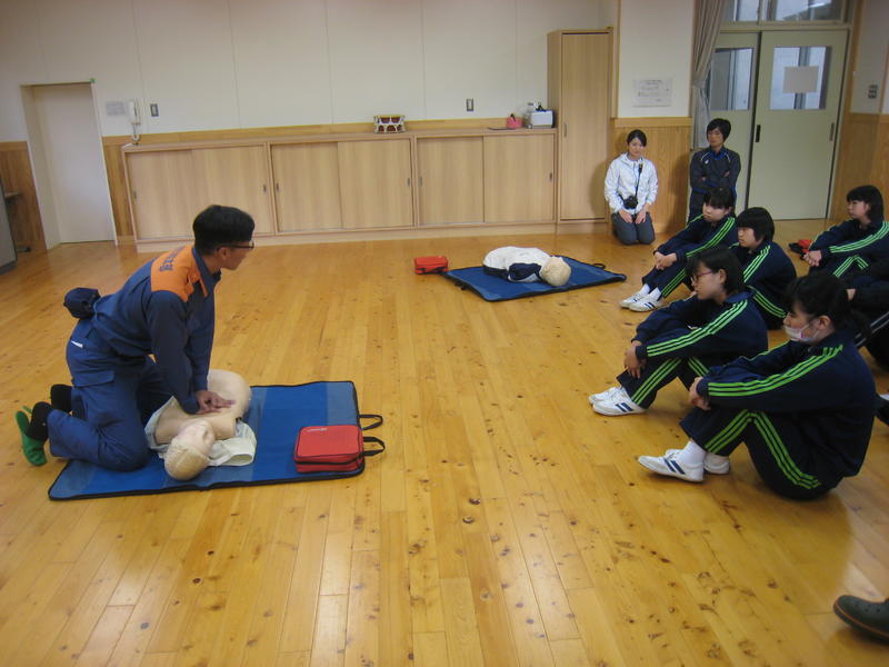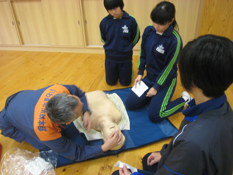 勿来消防署田人分遣所の隊員をお招きし、救命救急講習を行いました。中学生と教職員が対象です。この講習は毎年行っていますが、生徒たちは真剣に話を聞き、一生懸命に実習を行いました。今年初めて参加する1年生は、特にしっかりと実習に取り組んでいました。