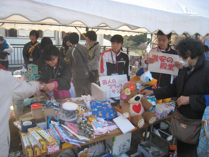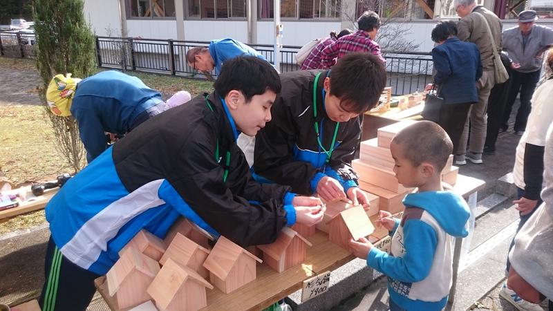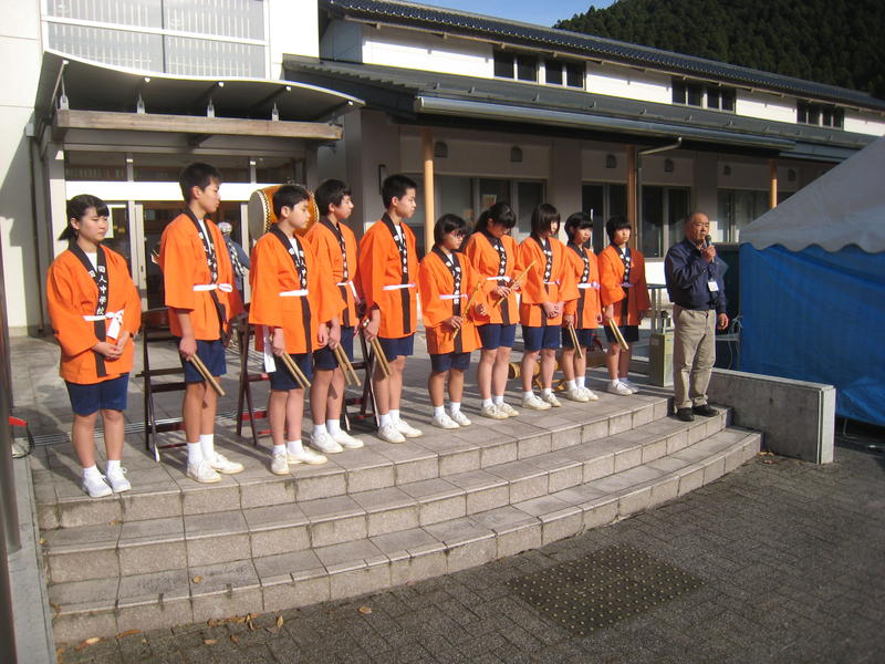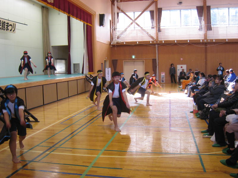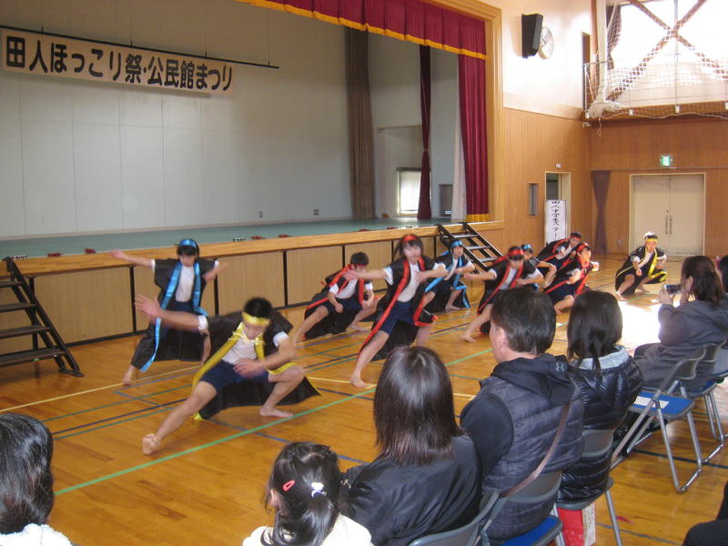 オープニングの「田人太鼓」披露に続き、体育館では「よさこい」を踊り、地域の方々に田人中生の元気な姿を見ていただきました。「ほっこり祭」での中学生の活躍は、地域にとってなくてはならないものになっています。オープニング終了後は、田人中学校PTAバザーの手伝いや、「ほっこり祭」に参加している団体のお手伝いを行い、地域の方々と一体になって活動しました。