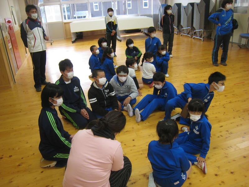 食事の後は、全員マスクを着用してレクリエーションを行いました。レクの内容は、小学校の給食委員が考えてくれました。当日の運営も、給食委員が中心となって行いました。