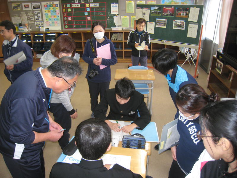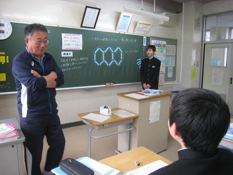 教員研修の一貫として、授業研究会を行いました。今回は、1年生の数学です。