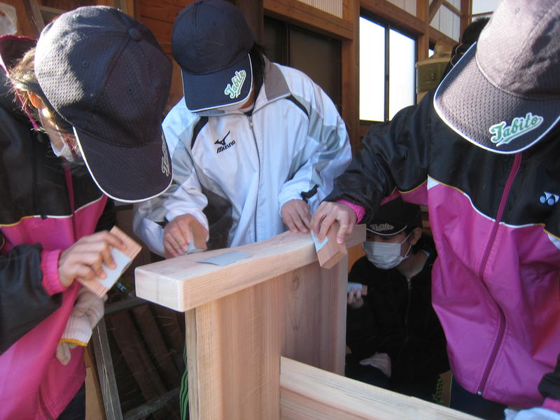 最後はみんなでサンドペーパーを使って手作業です。
