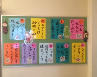 本日、12月号のmogi mannma通信を配付しました。今月の保健目標は「冬を健康に過ごそう」です。