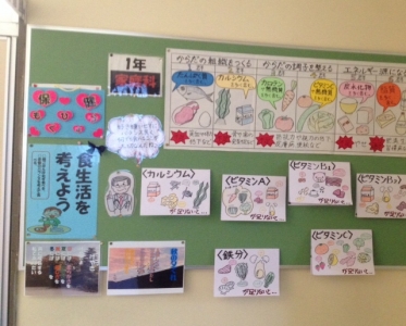 11月の保健目標は「食生活を考えよう」です。それにちなんで、保健室前の掲示物も張替えを行いました。1学年家庭科「食生活と栄養」3学年保健「食生活と健康」の学習内容を生かせる掲示にしました。
