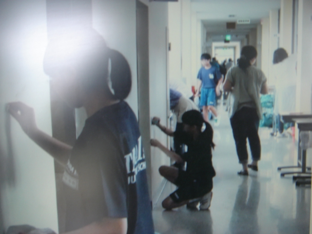 今回は校舎内のガラス磨きと壁の拭き掃除を行いました。