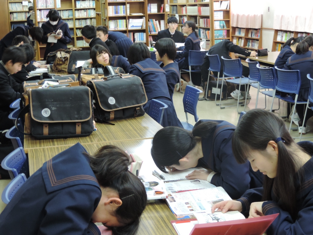 2015年11月27日 15時56分◯今週は3年生は三者相談、1・2年生は二者相談が行われています。1・2年生はいつもより長い放課後を部活動などに有意義に使っています。3年生は自分の相談時間を待つ間、図書室で学習に励んでいます。自らの進路実現に向けて、一生懸命に机に向かっています。