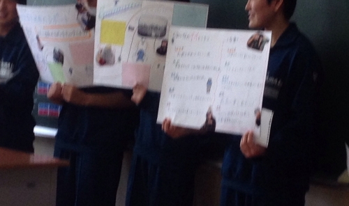 2015年4月24日 13時55分本日、授業参観・PTA総会の日です。3年生の授業参観の様子です。修学旅行についてまとめたことを班別で発表しました。たくさんの保護者の方に見ていただき、緊張の中の発表でしたが、上手く伝えられたようです。
