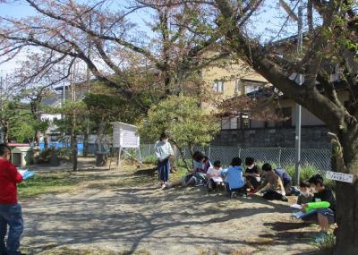 4年生は自分の木を決めて1年間様子を観察します。