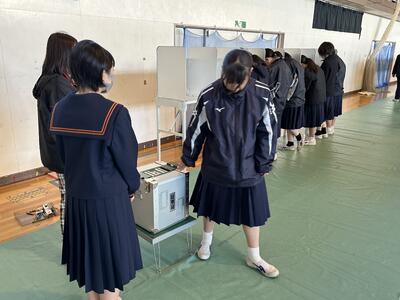 2025年2月9日 09時41分2月7日(金)、令和7年度前期生徒会役員選挙 立会演説会及び投開票が行われました。今回は全部で13人と非常に多くの生徒が立候補しました。これからの平二中をよりよくするために、各自一生懸命に公約を訴え、全校生徒も真剣に考えて投票していました。