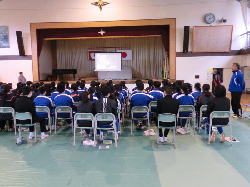 今日11月27日(水)は体育館で面接や志願理由書の書き方について学んでいます。