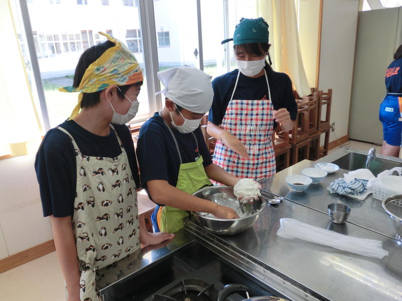 2019年9月18日 11時46分1年4組は本日9月18日(水)の授業でお月見団子作りをしています。粘土をこねるように楽しんでいる班、水を入れ過ぎて注意を受けている班など様々です。おいしく出来上がったでしょうか。
