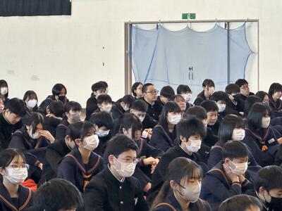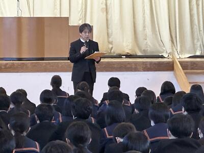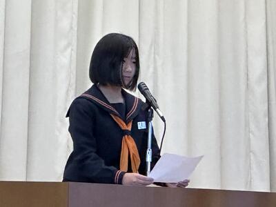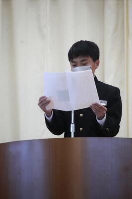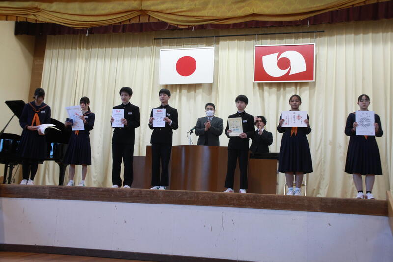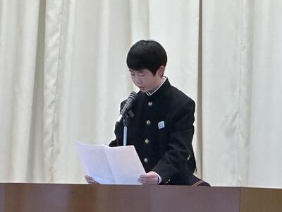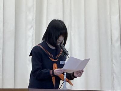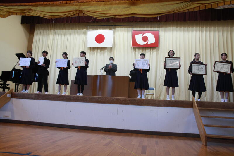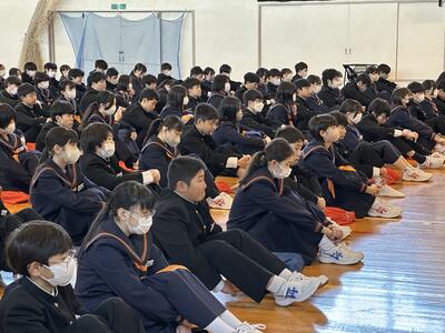 校長先生の式辞のあと、代表生徒による作文発表、表彰、生徒指導の先生からのお話がありました。冬休み15日間を、事故なく安全にお過ごしください。2学期お世話になりました。良いお年をお迎えください。