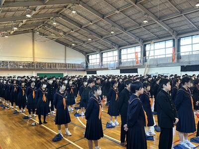 2025年1月8日 12時48分明けましておめでとうございます。1月8日(水)第3学期始業式が行われました。校長先生のお話、各学年と生徒会代表の「冬休みの反省と3学期の目標」発表、生活指導の先生のお話を聞きました。いずれの学年も次の年度に向けた準備の時間になりますから、目標をもって頑張ってほしいと思います。