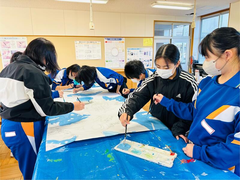 また、会場入口に展示される看板を本校美術部2年生が制作しました。今まで美術部で培った力やチームワークを出し切り、細部までこだわって制作した作品です。