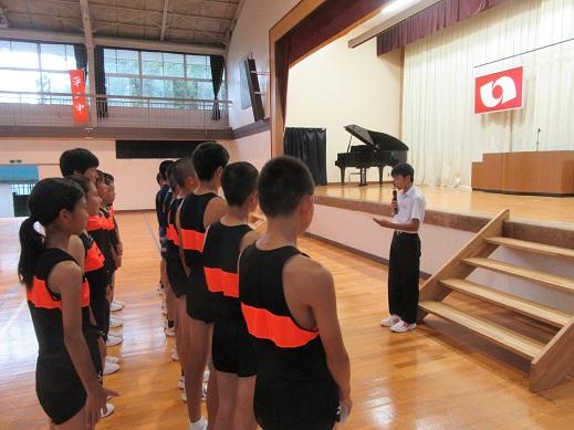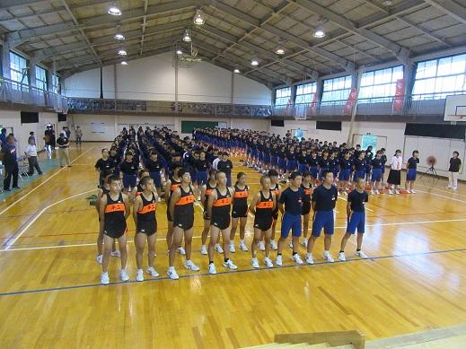 2019年9月3日 17時38分 本日9月3日(火)6校時に市中体連駅伝大会に参加する選手への激励会を実施しました。体育館入場後校長先生の話、各選手の抱負発表、生徒会長の激励のことば、木村くんのお礼のことば、校歌斉唱を行い最後は堂々とした態度で退場しました。明日は今までの練習の成果を発揮し、選手一人一人が自己ベストの更新を達成できることを期待しています。