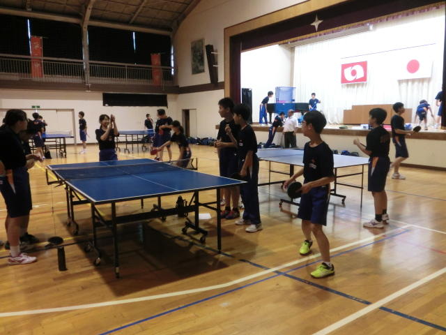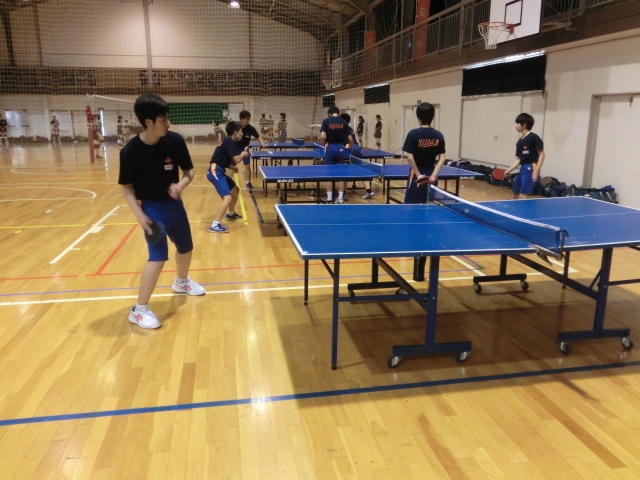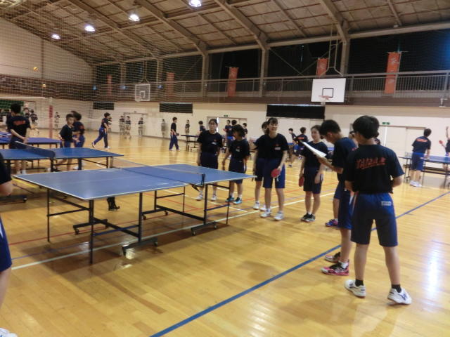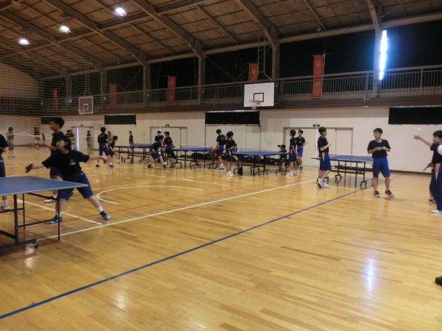 男子卓球部は入念にサーブ・レシーブを確認していました。女子卓球部は2年男子を相手に試合形式の練習に取り組んでいました。