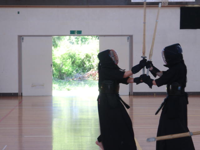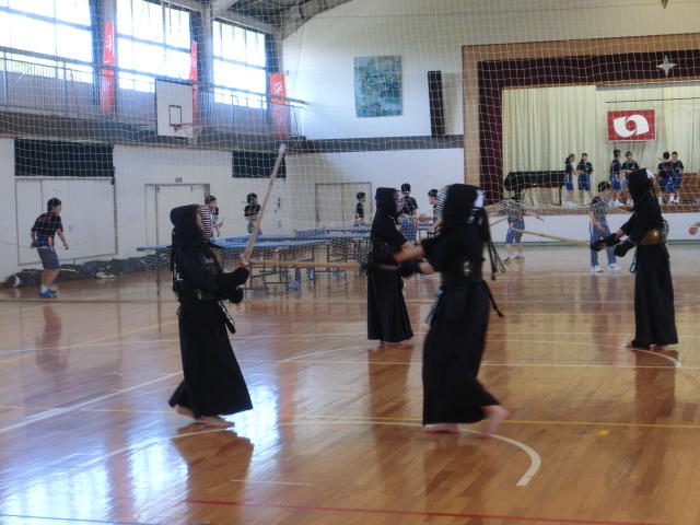 剣道部は暑くなってきた体育館で、掛かり稽古で汗していました。