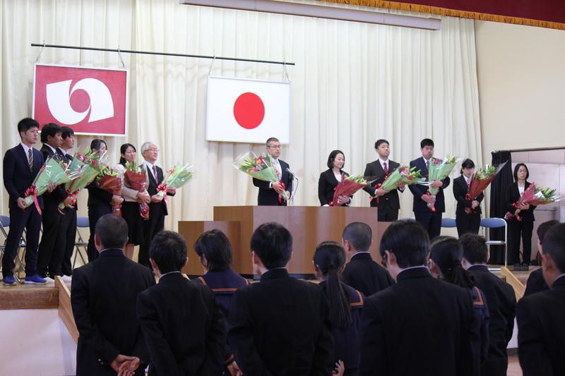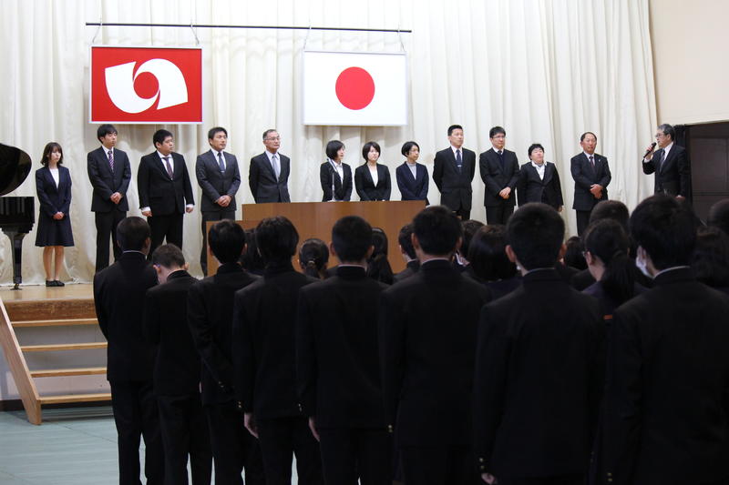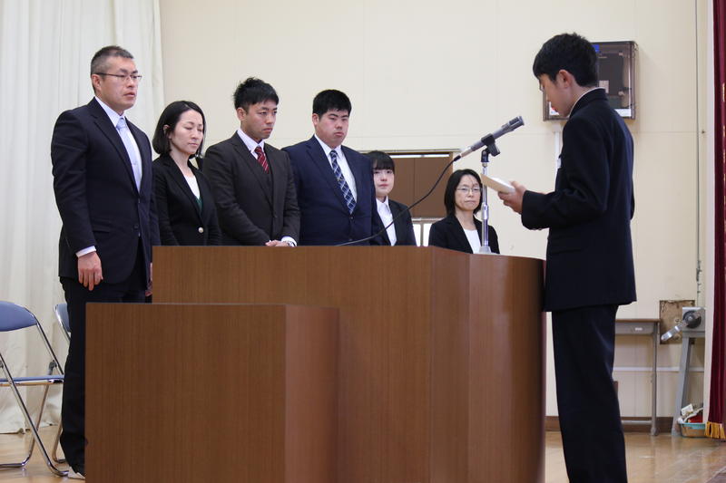 式に先立ち転入職員の紹介が行われました。3月に12名の教職員とお別れし、寂しい思いをしていましたが、心機一転新たな気持ちで取り組んでいきたいです。