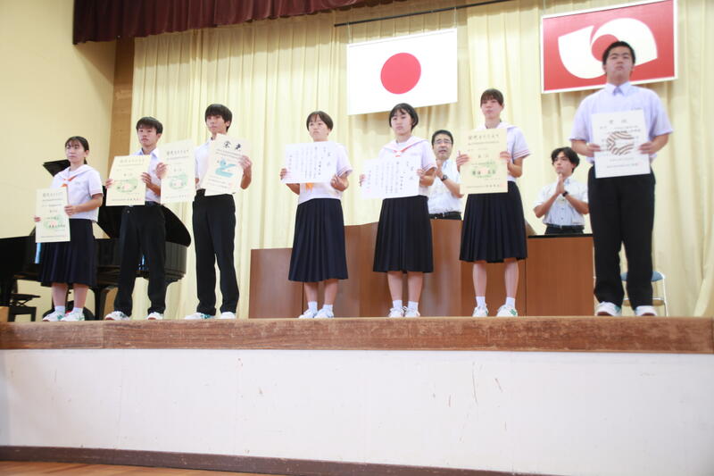 始業式では、校長式辞、表彰、英語弁論代表者の発表、生徒指導の先生のお話がありました。