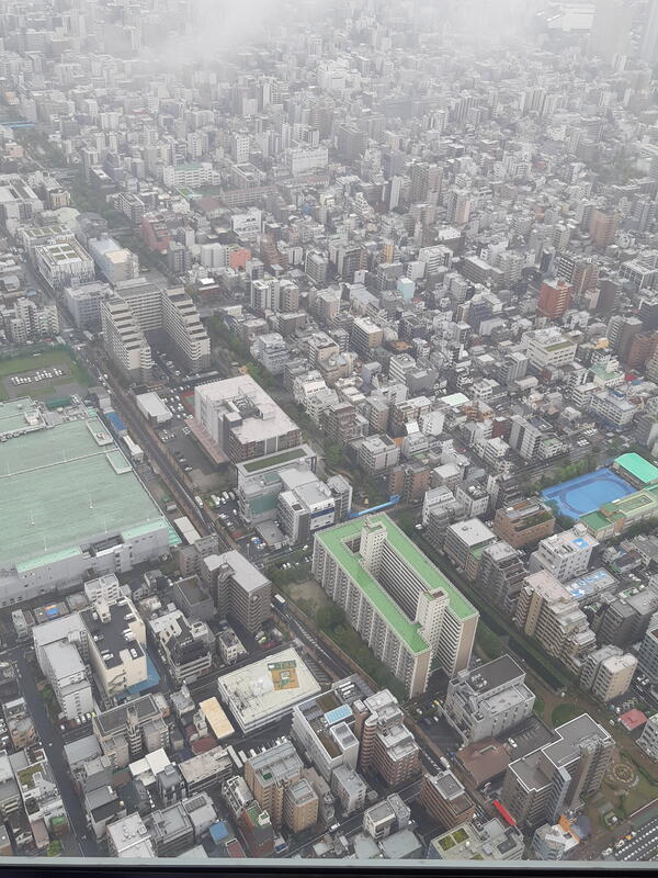 2024年4月24日 15時38分スカイツリー展望台(350m)に登ってきました!曇天のため、遠くの景色を眺めることはできませんでしたが、それでもやはり迫力がありました。