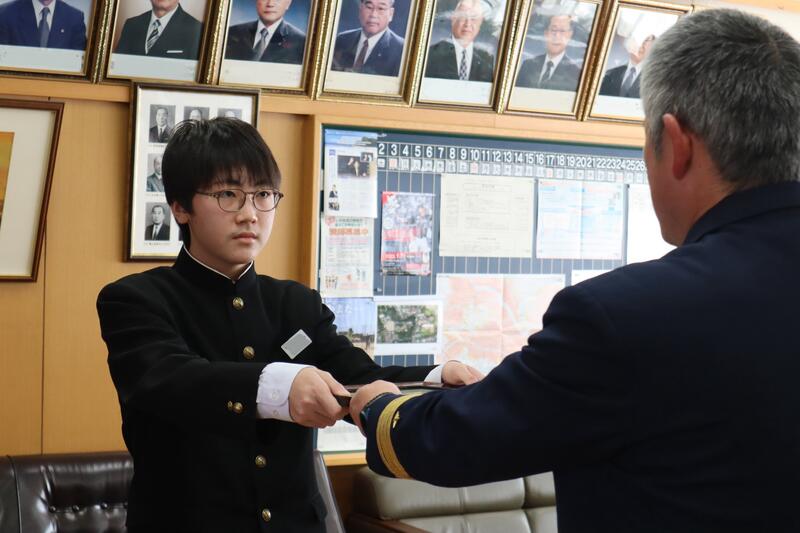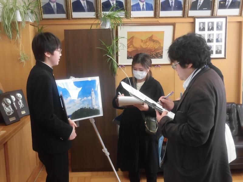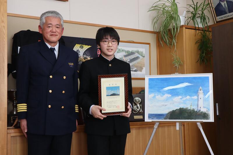 2024年2月8日 18時43分美術部の生徒が『灯台絵画コンテスト2023』で「特別賞」を受賞し、本校の校長室で表彰式が行われました。