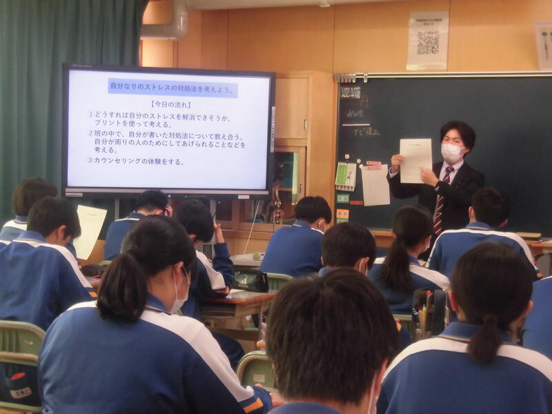 「自分のストレスを上手に解消しよう」という題材で、話し合い活動を通して、自分のできることや自分がしてあげられることなどを考えました。良い雰囲気で悩みを相談できたのが印象的でした。