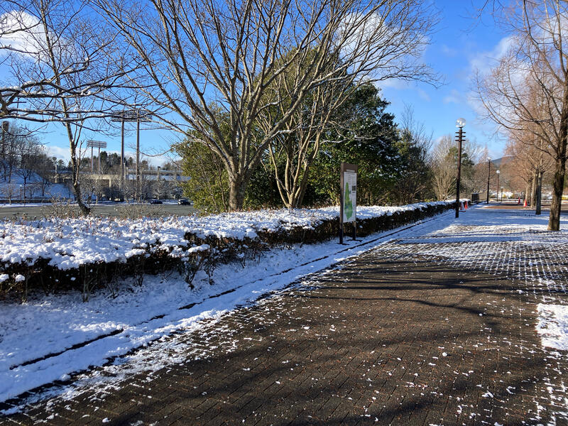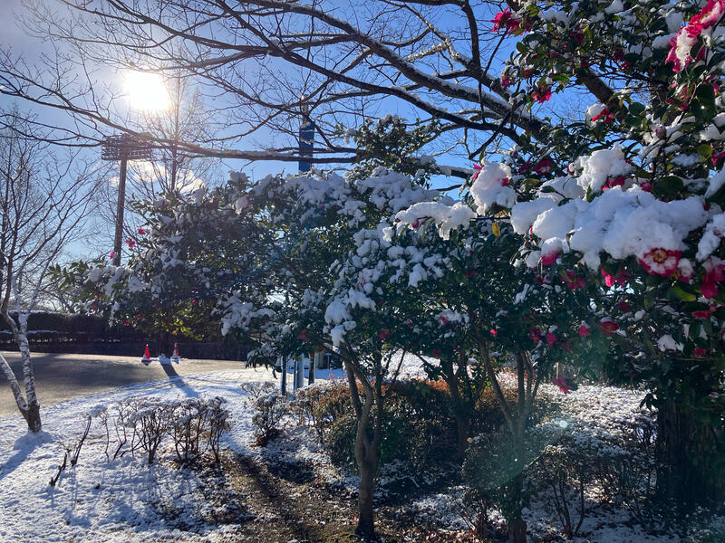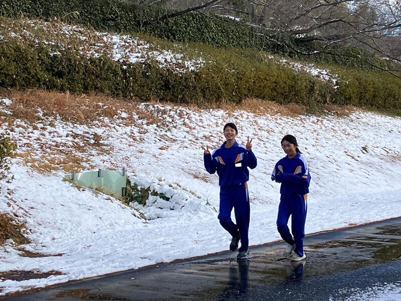 前日降った雪が残っている中での実施となったため、安全面に最大限の注意を払いながら行いました。また練習間の休憩時間では、生徒たちが積もった雪で楽しそうに雪遊びをしていました。