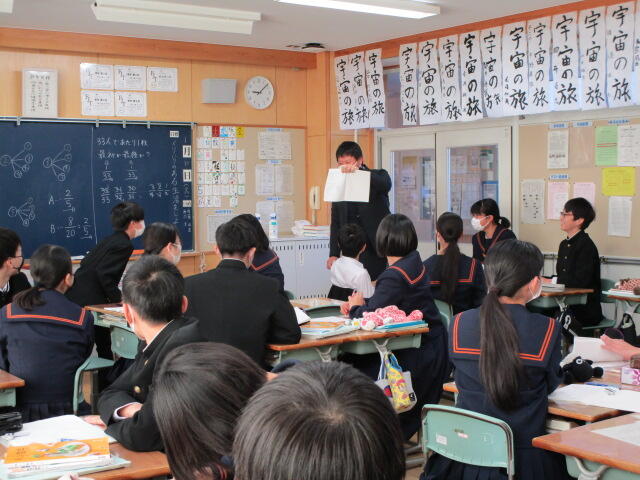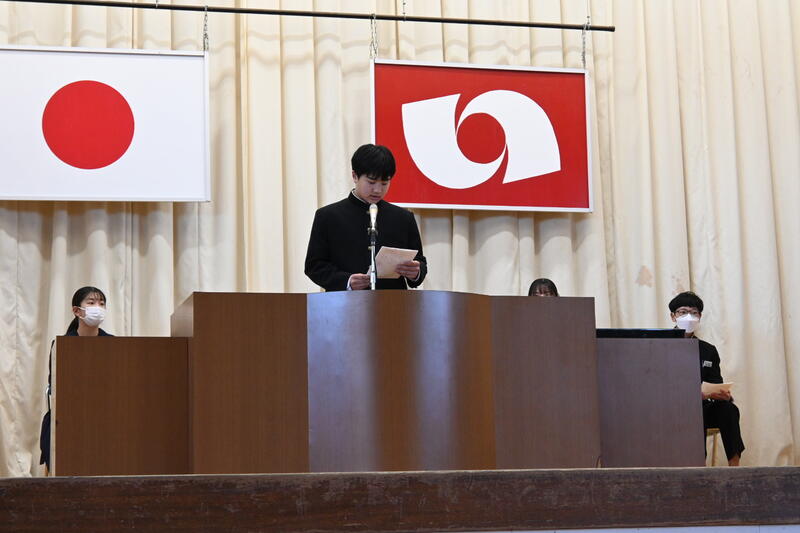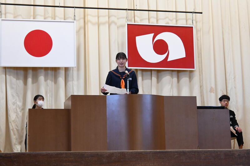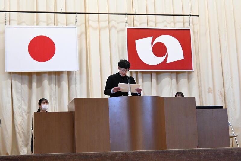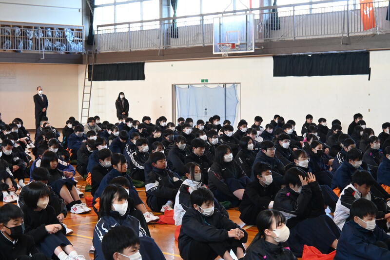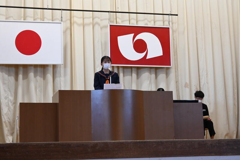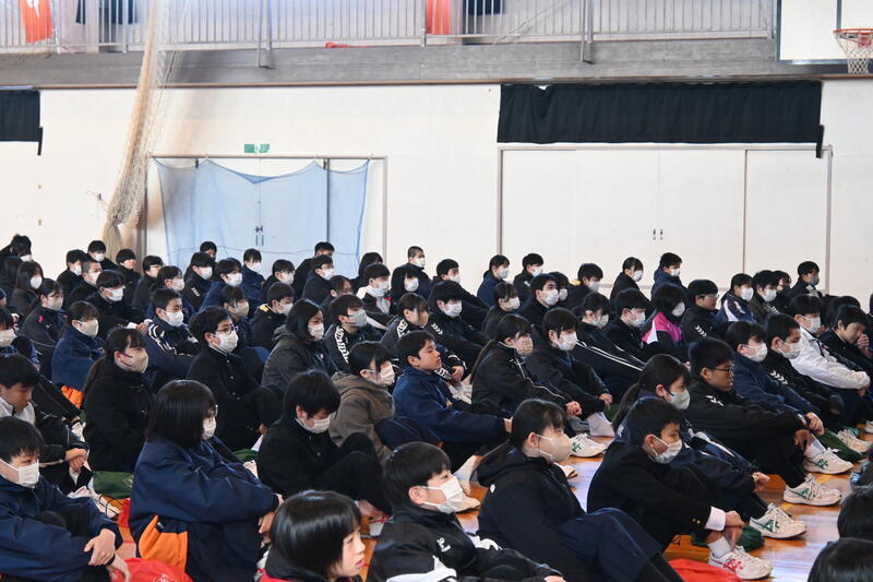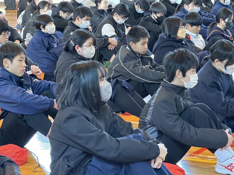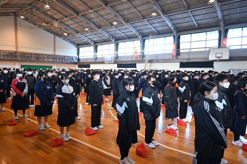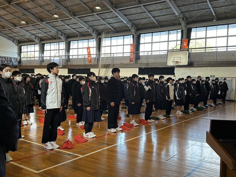 代表生徒による、「冬休みの反省と三学期の抱負」でも発表があったように、FJTを心がけ、規則正しい生活を送るとともに、それぞれの学年が、次のステージを意識した行動をしていけるよう、残りの期間を充実した時間にしてほしいと思います。