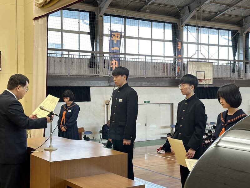 2024年1月9日 10時06分1月9日(火)新たな年を迎えた平二中では、三学期の始業式が行われました。