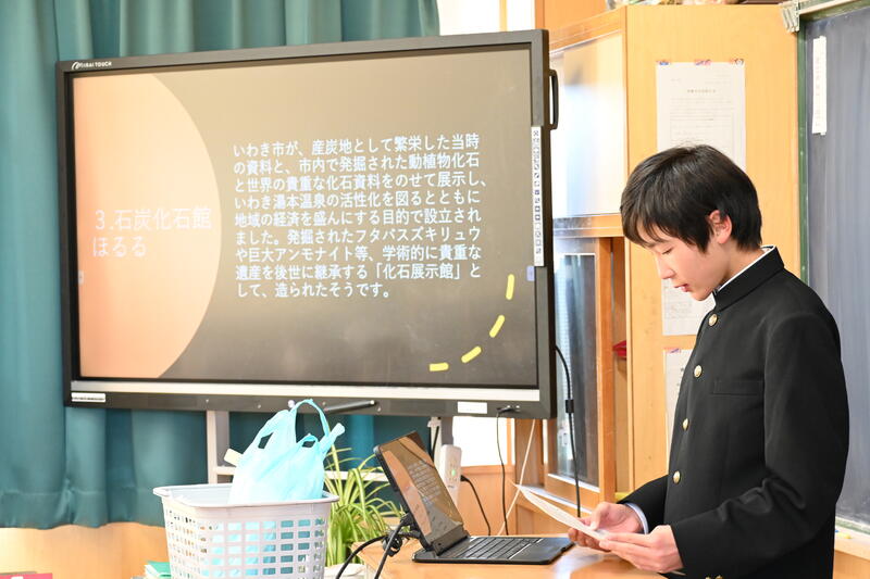 生徒はこの日に向けて、自身で研究テーマを設定し、いわきの文化や歴史などについて、調べ学習を行ってきました。