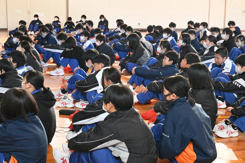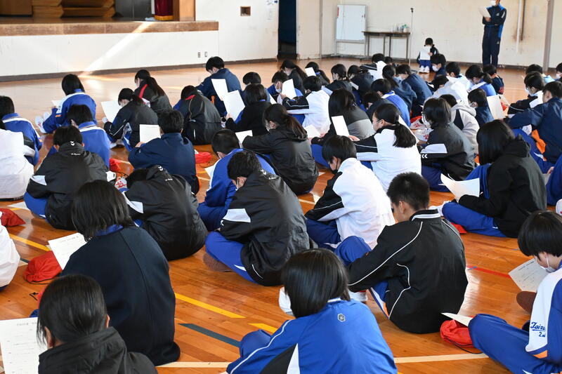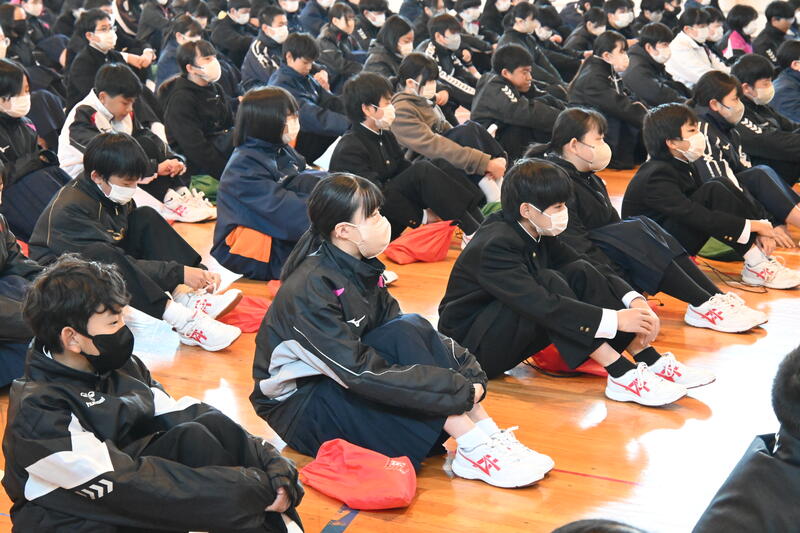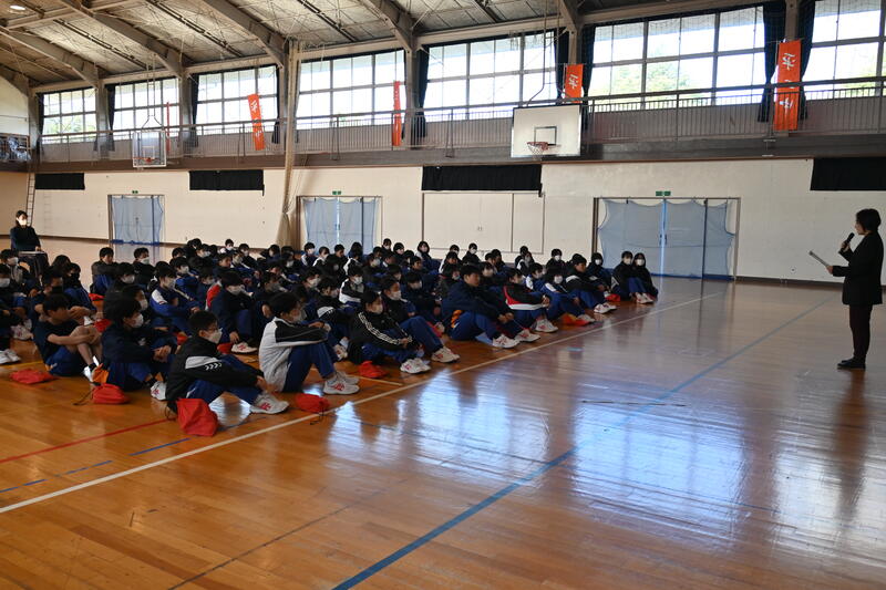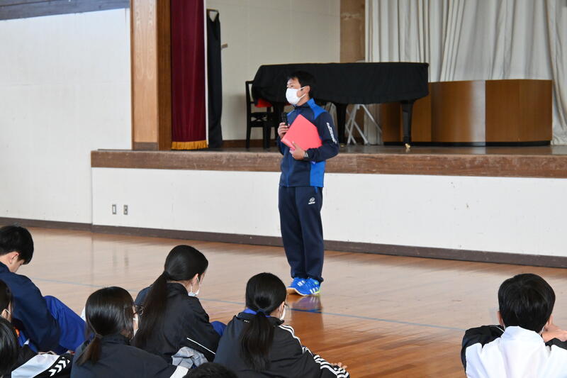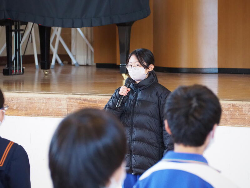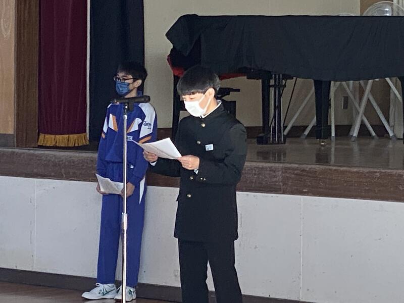 1学期と比べ成長がみられた点、そして3学期に向けた課題点など、学年全体で今年1年間を振り返ることができた、良い機会となりました。また「2学期の反省と冬休みの抱負」の発表を行った3人の代表生徒からは、2学期の反省を生かし、3学期により良い学校生活を送ろうとする、前向きな姿勢がみられました。