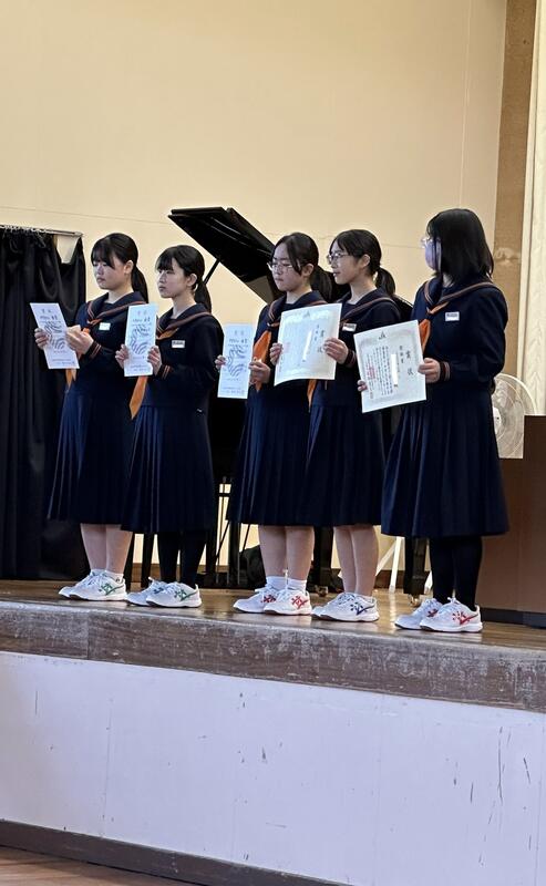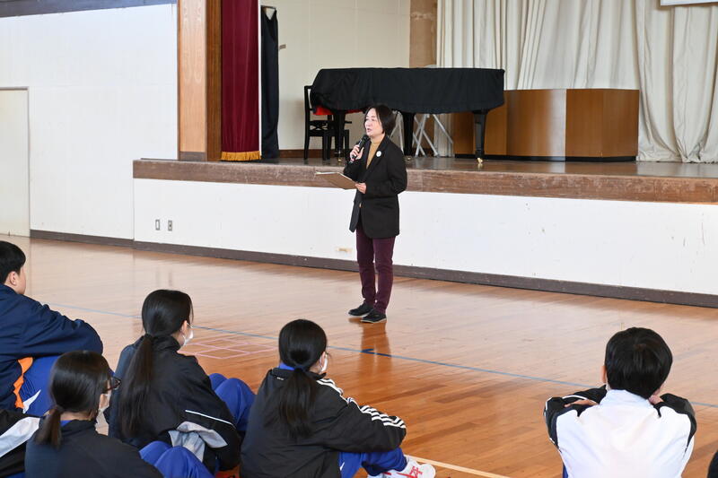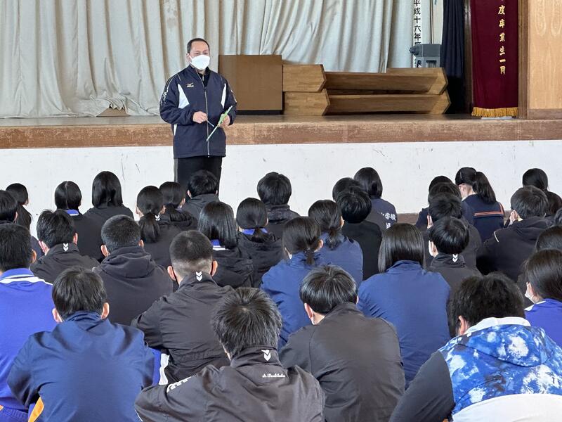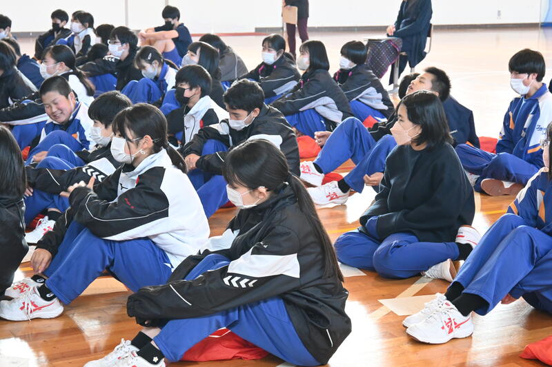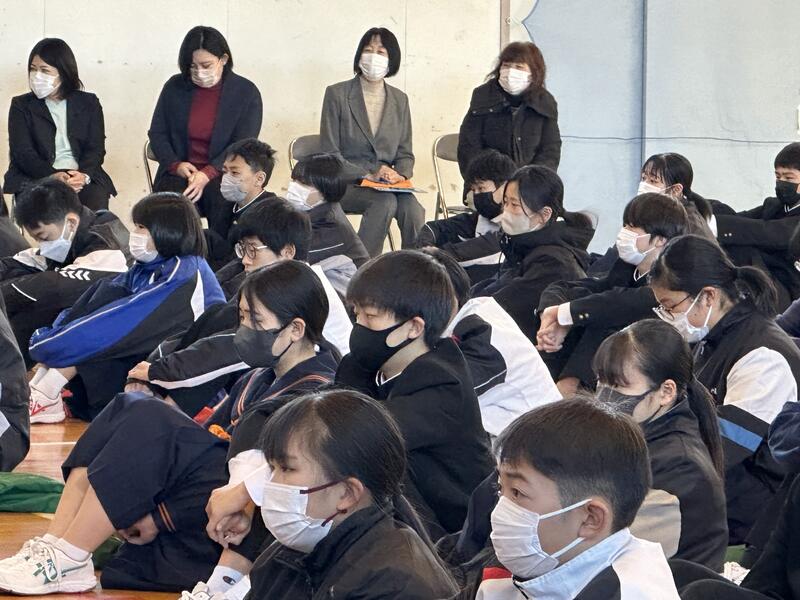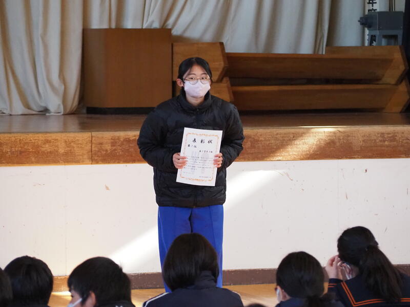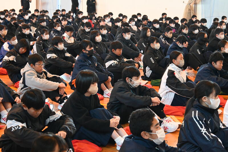 1学期と比べ成長がみられた点、そして3学期に向けた課題点など、学年全体で今年1年間を振り返ることができた、良い機会となりました。また「2学期の反省と冬休みの抱負」の発表を行った3人の代表生徒からは、2学期の反省を生かし、3学期により良い学校生活を送ろうとする、前向きな姿勢がみられました。