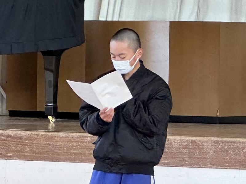 その後、各クラスの代表が反省を発表しました。反省を活かし、有意義な冬休みにして欲しいと思います。