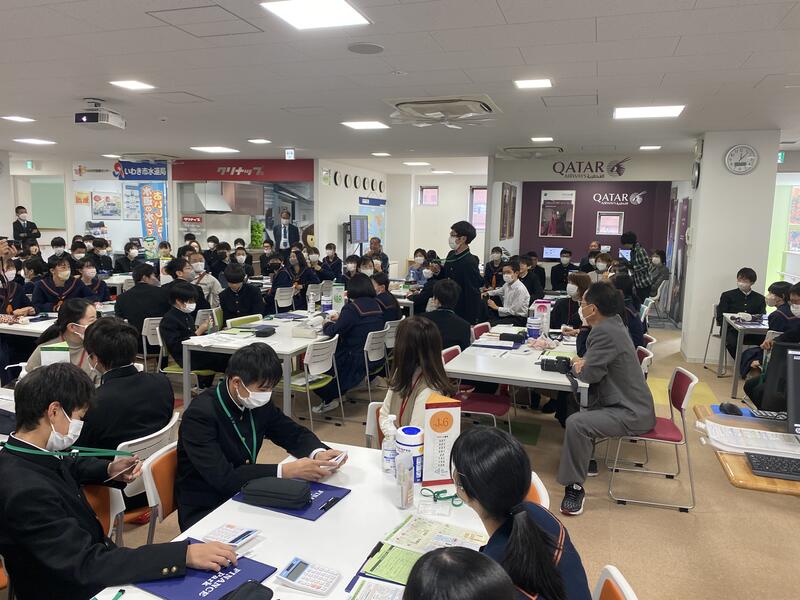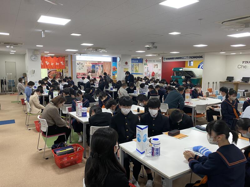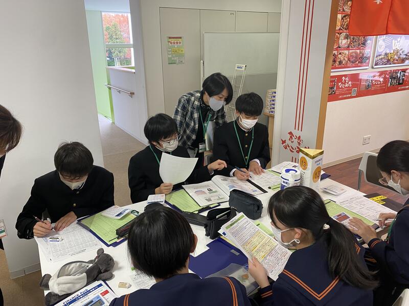 2023年12月6日 16時23分2年生は総合的な学習の時間の体験学習でエリムへ行き、ファイナンス・パークを行いました!ファイナンス・パークでは、事前学習で学んだことを生かし、年齢や家族構成、年収などが割り振られた個人情報カードをもとに、各ブースから生活に必要な資料や情報を集め、自らの意志で実際に生活設計を行い、「選択と意思決定」の大切さなどを、体験的に学んでいきました。将来に役立ててほしいと思います。