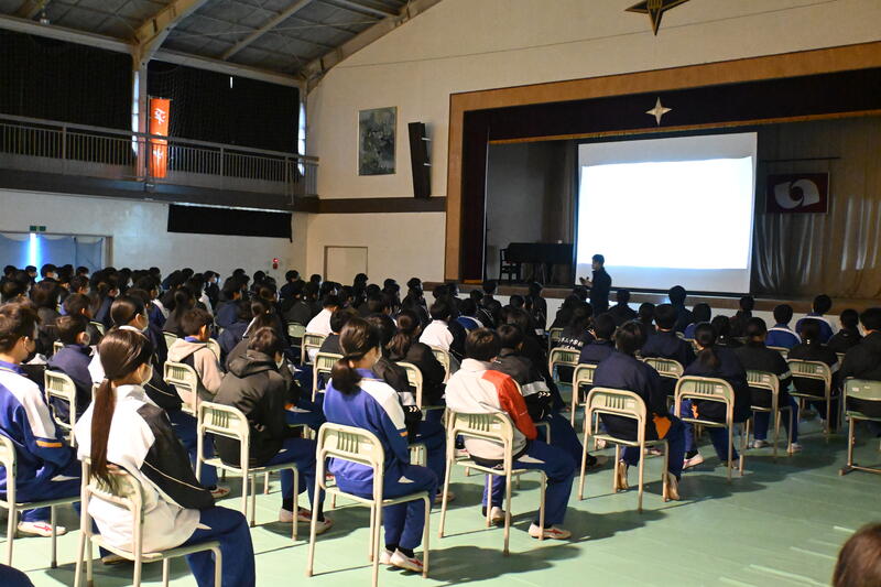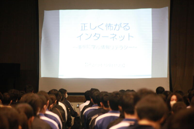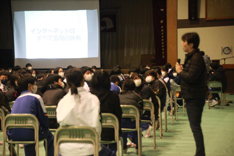 2023年12月15日 15時43分12月15日(金)全校生を対象にした、情報モラル講演会が行われました。講演会では、講師として小木曽 健(おぎそ けん)さんをお招きし、インターネットに潜む様々な危険性について教えていただきました。