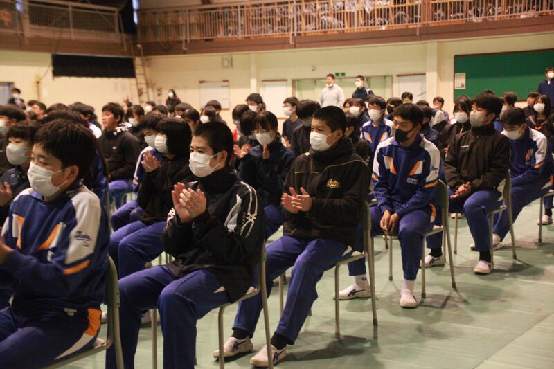 生徒からは強すぎる、コースが読めない、サーブが強いなど先輩方の強さに圧倒された感想が数多く聞かれた一方で、ボールの回転量が中学生とは全く違う、不利な状況になっても巻き返すことができる力があるなど相手を冷静に分析していました。今回の大会出場の経験を通して、今後の練習ではサーブやレシーブ、ドライブなど様々な技術をさらに向上させたいと決意を新たにしました。