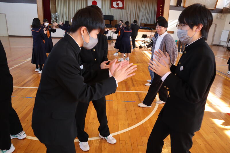 2学年は「音楽を体で表現する」という授業でした。手や足でリズムを表現したり、手拍子を相手に送ったりしました。
