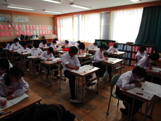 2学期中間テストが実施されました。部活動や行事など忙しい中でしたが、これまでの取り組みを最後まであきらめずテストにぶつけていました。