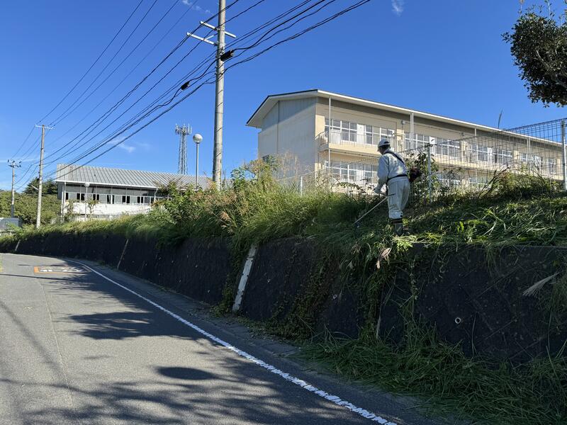 PTA役員有志で学校周囲と石名坂上のT路、二小側階段通学路の草刈りと伐採を行い通学路の見通しを確保していただけました。