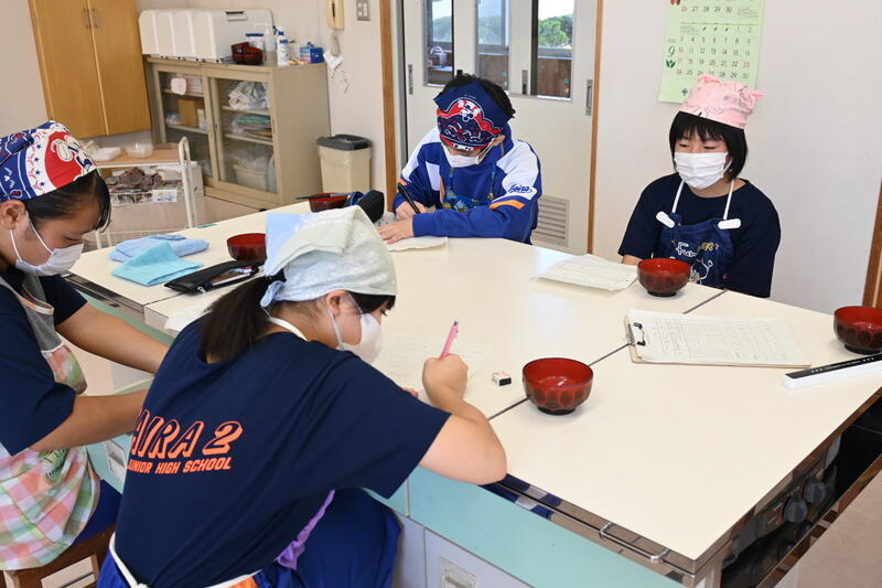 2023年10月12日 12時02分10月12日(木)1年2組で調理実習がありました。今回の実習では、豚汁を作っていて、班で協力しながら一生懸命作ることができました。調理後は、反省シートまでしっかり記入していました。