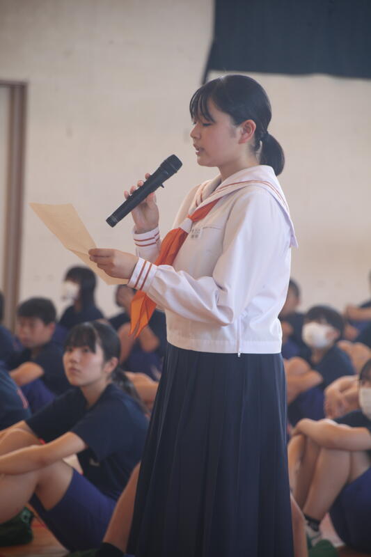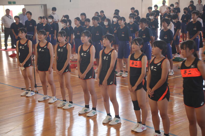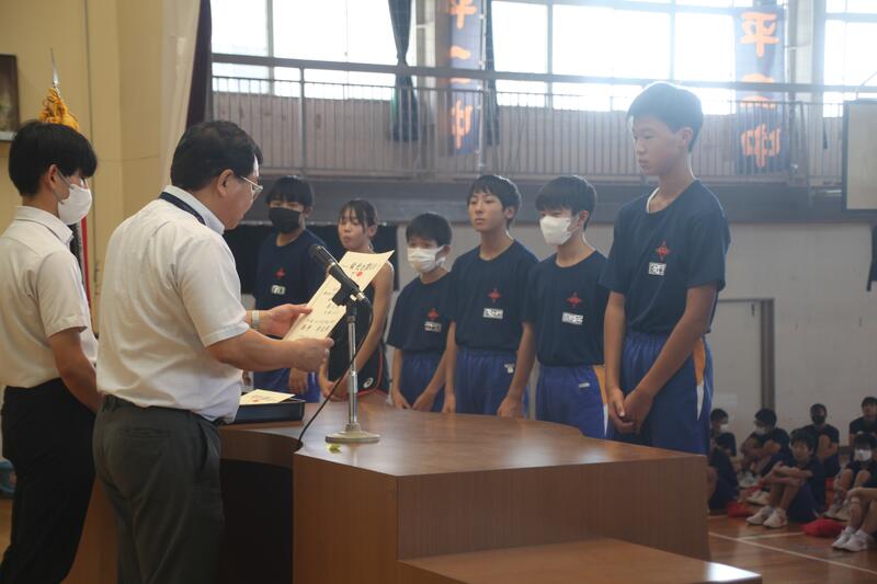 2023年9月28日 16時19分9月28日(木)県駅伝壮行会を行いました。壮行会の前に表彰も行われました。校長先生からは、平二中の雰囲気が良く、学習の成績も伸びてきているとお話がありました。特設駅伝部も6月から雰囲気良く練習を重ねて来ました。その成果が出て、県大会出場できることは、本当に素晴らしいことです。大会ではぜひ頑張ってきてください。