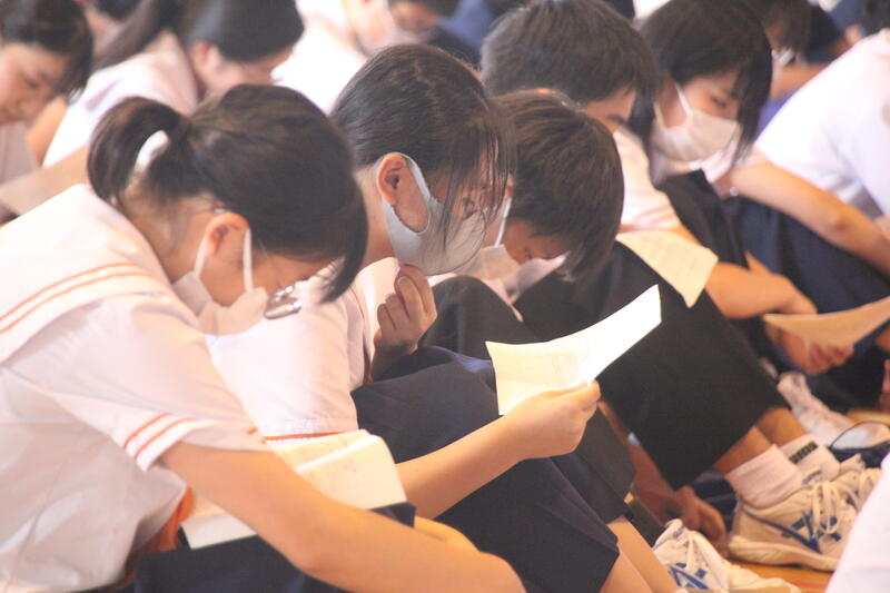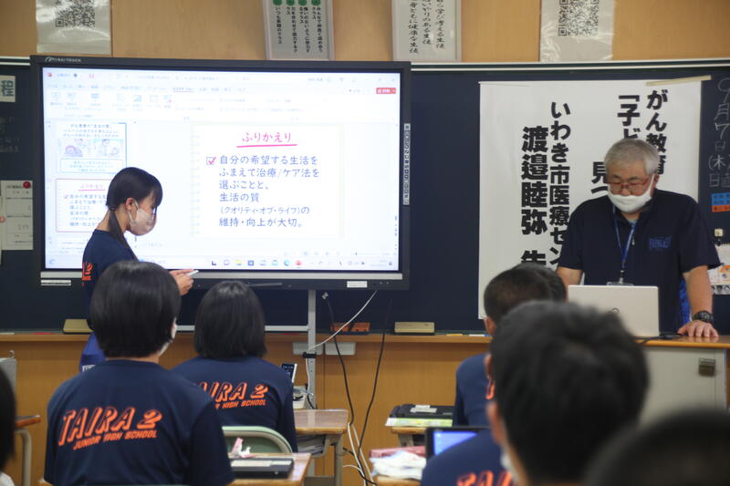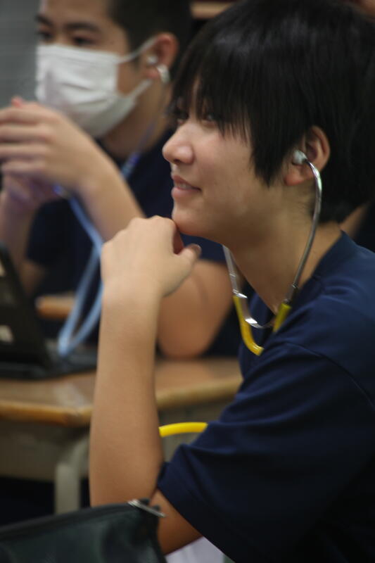 聴診器で心臓の音を聞き、命について考え、がんのお話を聞き、家族を想い、自分の生き方を考える貴重な時間となりました。