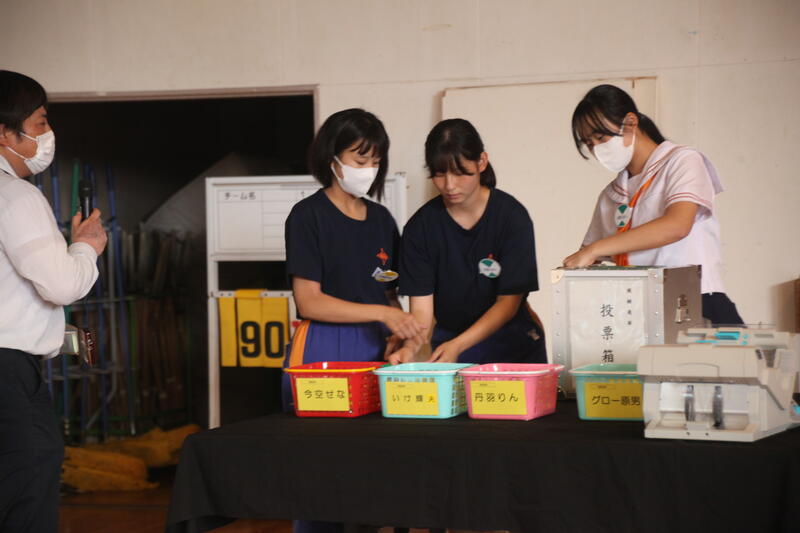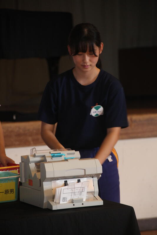 本物の記載台や投票箱、集計の機械を使用できて、良い経験となりました。先生方の出口調査と選挙結果も一致していたそうです。